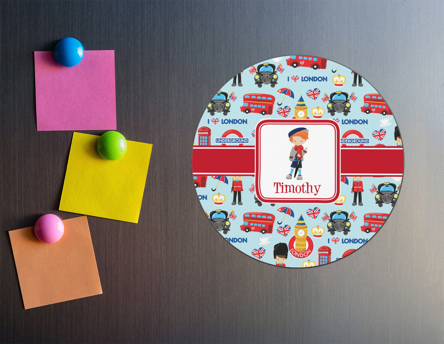 Get rid of all those unslightly magnets you've gathered from food delivery places and jazz up your fridge with our personalized round magnets. If you're looking for a small gift with a big bang you've found them!! With the designs and colors from our collections you are sure to find one that fits anyone's personality.