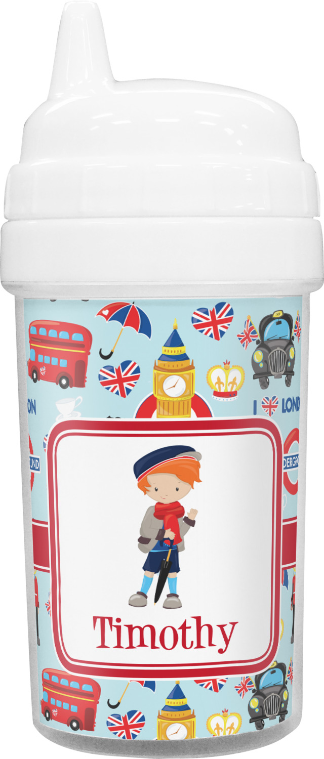 Our toddler cups are free of BPA, and have a twist-open lid so that you can easily fill and clean these cups for your young ones. Each cup also comes with a sippy nozzle to reduce spills. We offer these custom sippy cups in two different sizes; we have a baby sippy cup that holds 5 ounces, and a toddler sippy cup that holds 10 ounces. Your customization is printed on a premium glossy media insert that is placed within these toddler drinking cups.