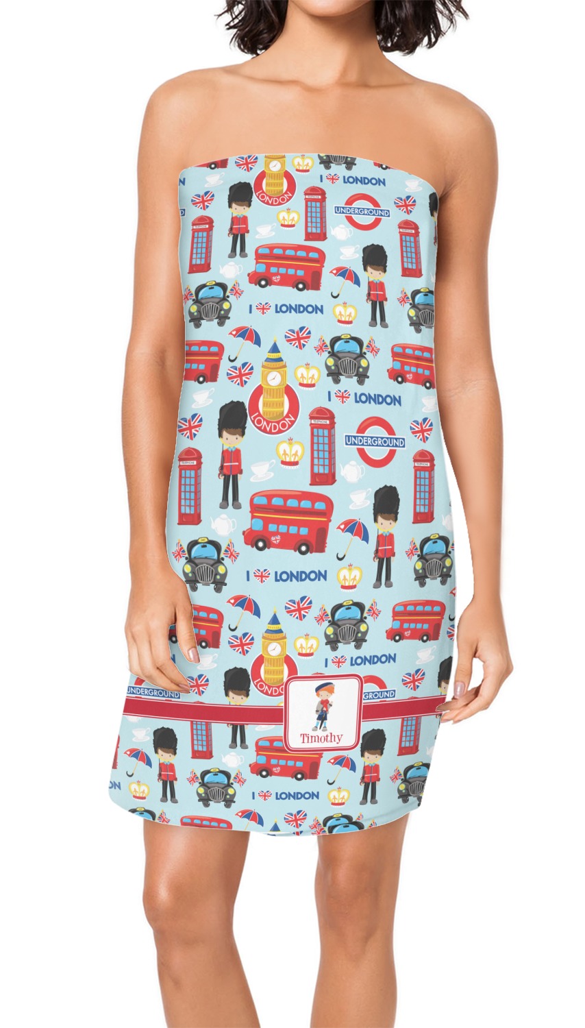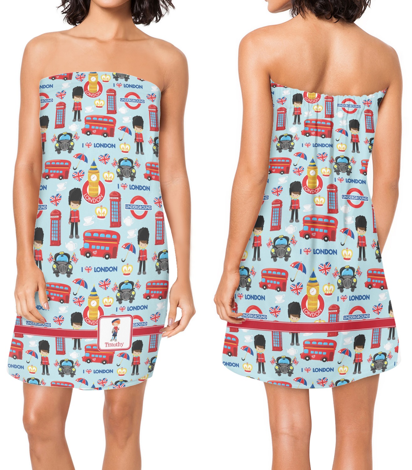 Made from a plush, fleece fabric, these luxurious towel wraps are comfortable and absorbent. They are printed, cut, and sewn for you, right here in the USA, after you place your order. These personalized bath wraps measure at approximately 59 by 32 inches, and display your customization across the outside.
