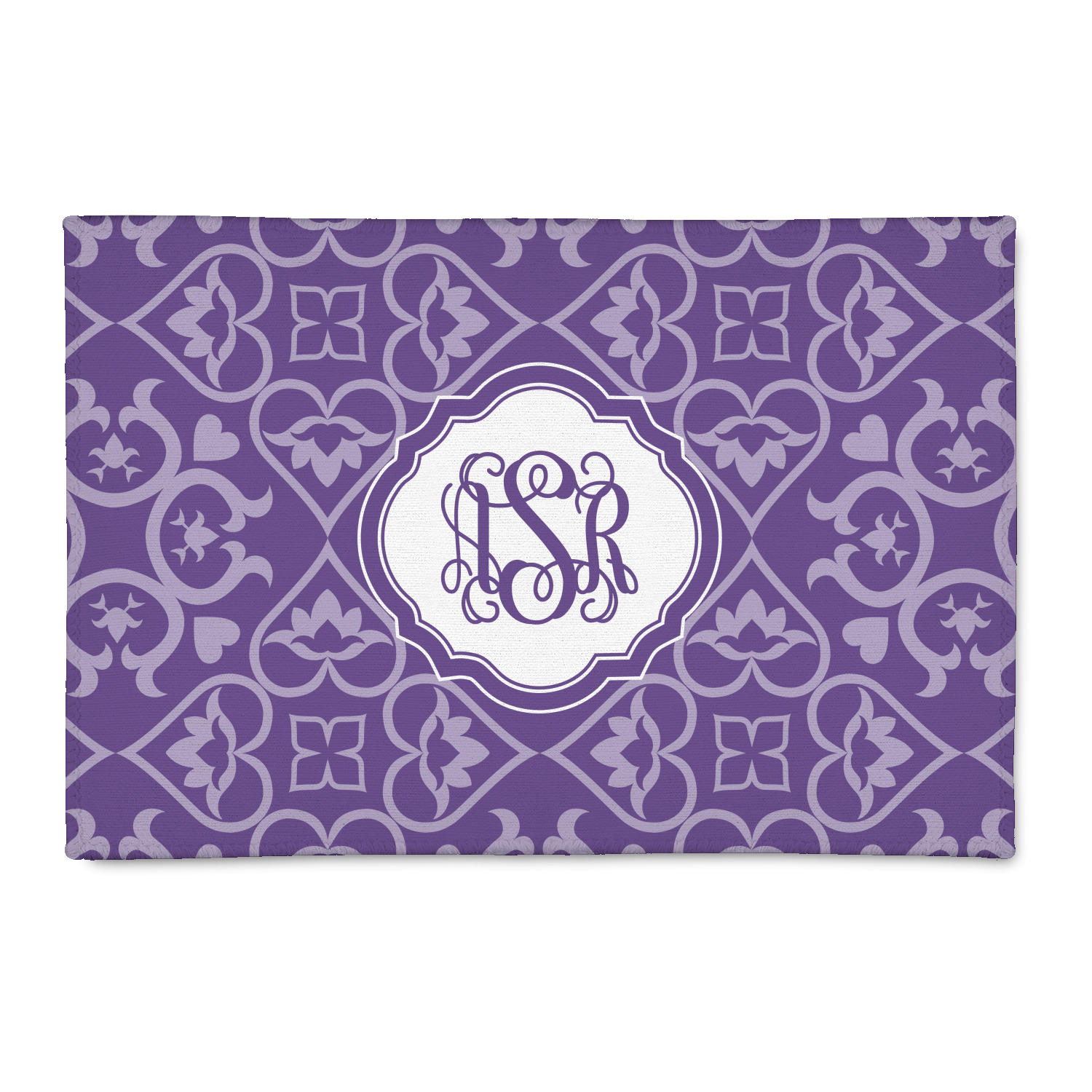 A purple scalloped label highlights a classic personalized monogram or the personalization of your choice.