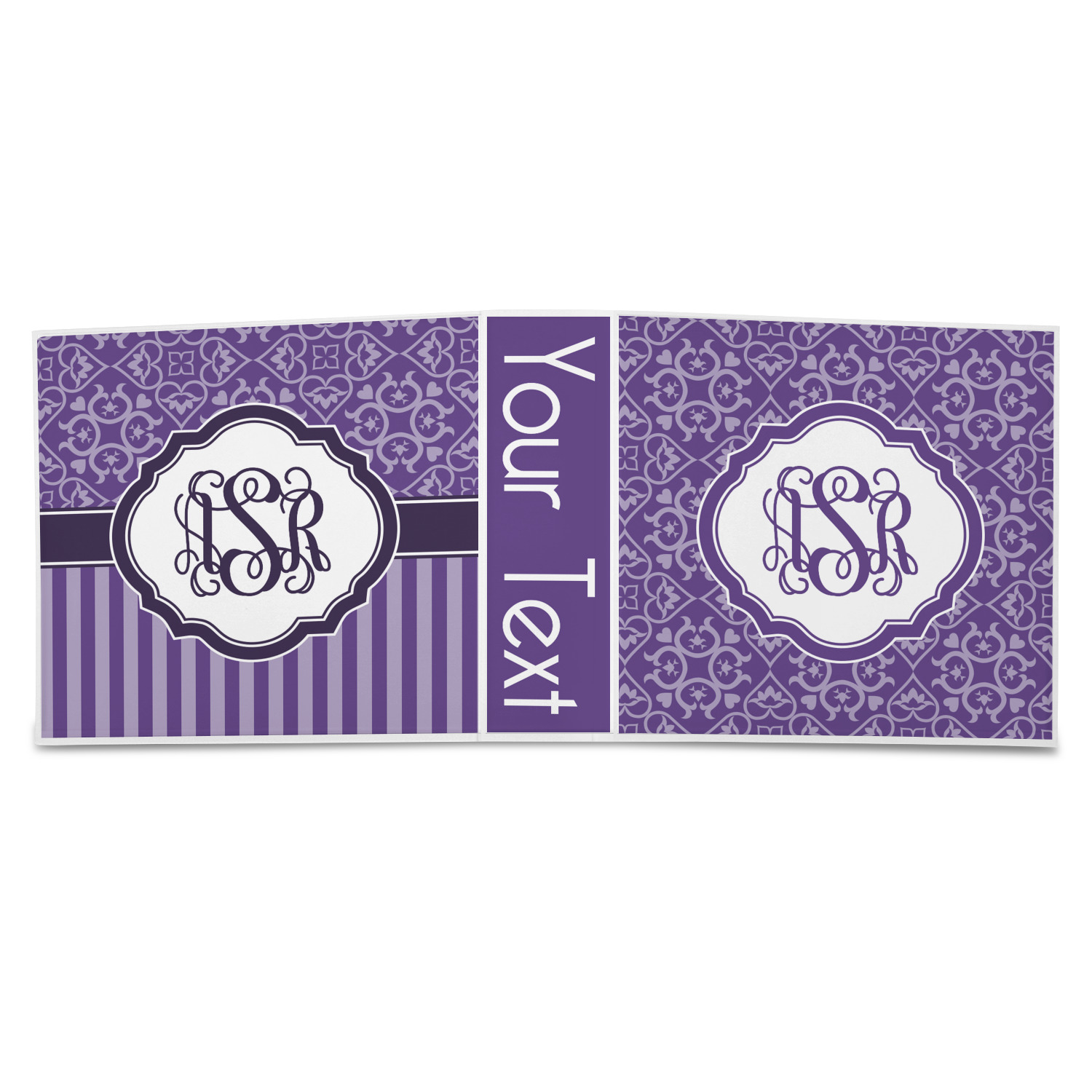 A purple scalloped label highlights a classic personalized monogram or the personalization of your choice.