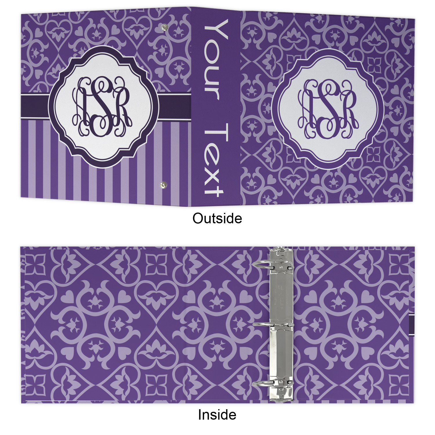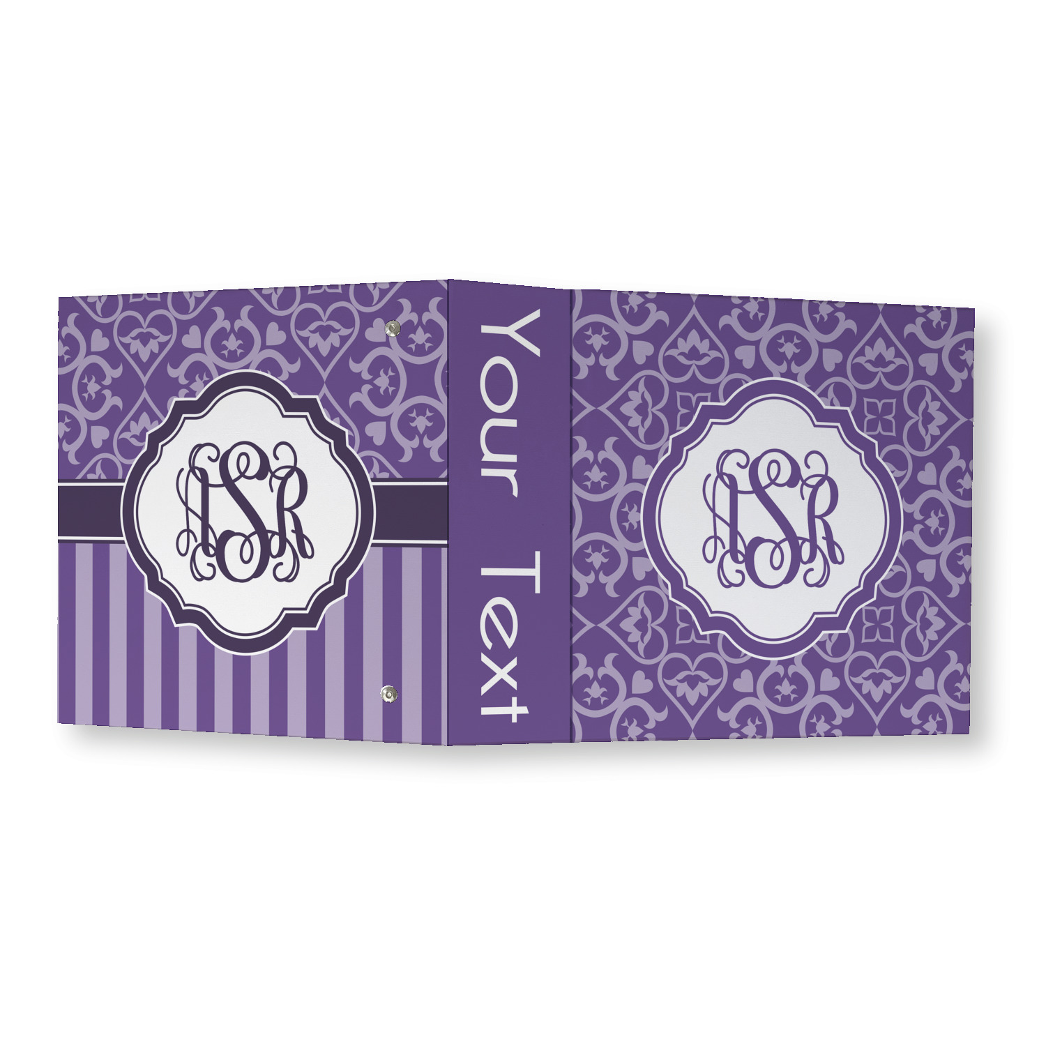 Made from a sturdy cardboard base with a full high quality canvas textured vinyl wrap with the design of your choice. Unlike our standard 3-ring binder with the full wrap design your artwork wraps from the front and back and into the inside of the binder.