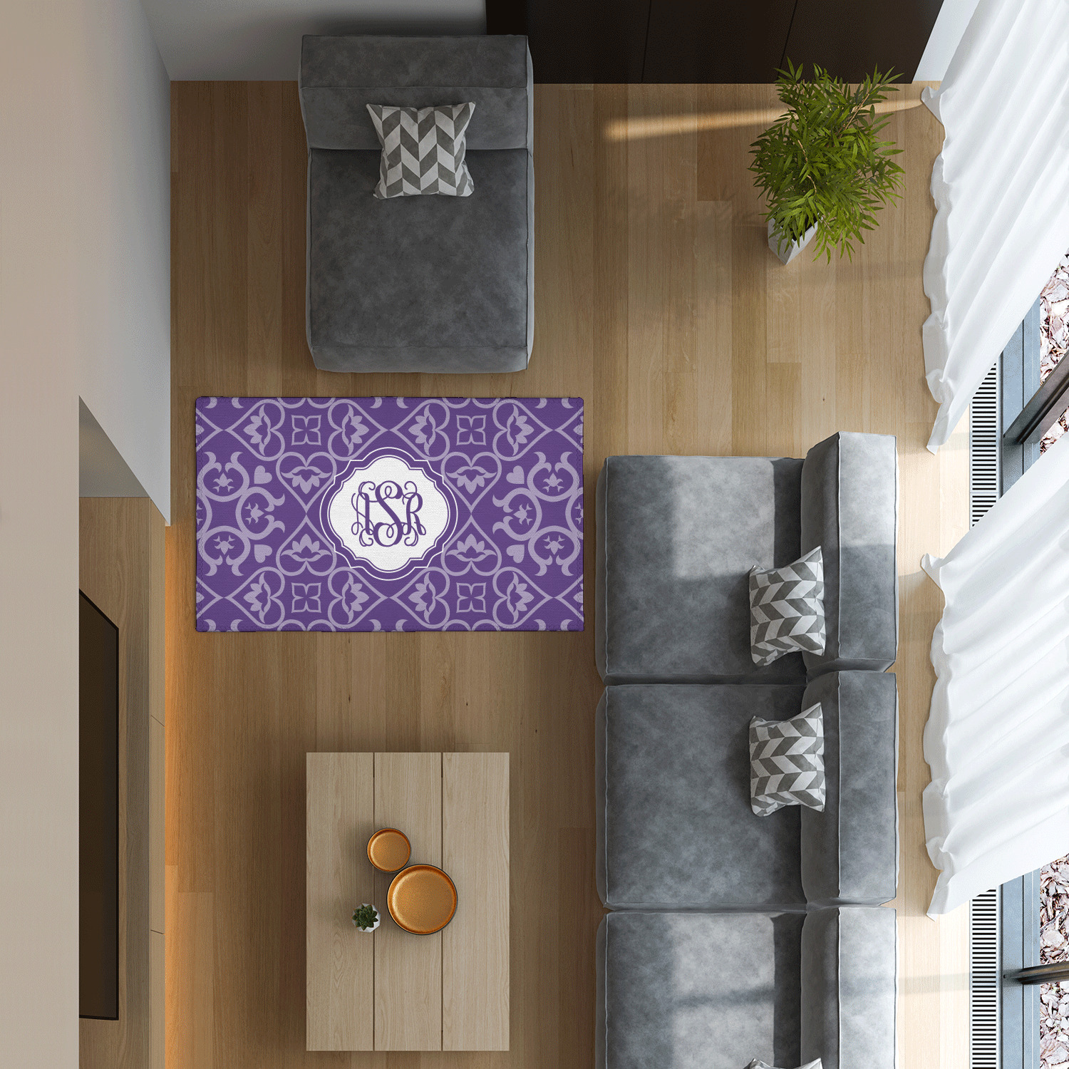 Area rugs add color and warmth to any room in the house, so create a custom area rug to suit your personal style and match it to the colors in your home. Have it personalized with a monogram, initial, name or a combination of these - the choice is yours.