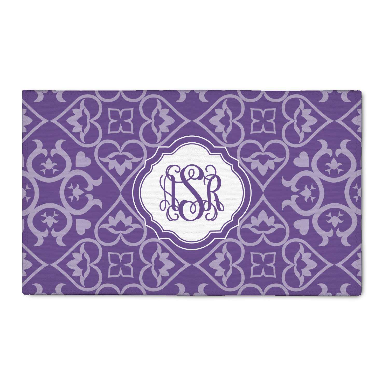 A purple scalloped label highlights a classic personalized monogram or the personalization of your choice.