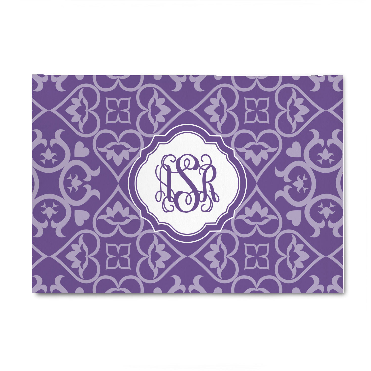 A purple scalloped label highlights a classic personalized monogram or the personalization of your choice.