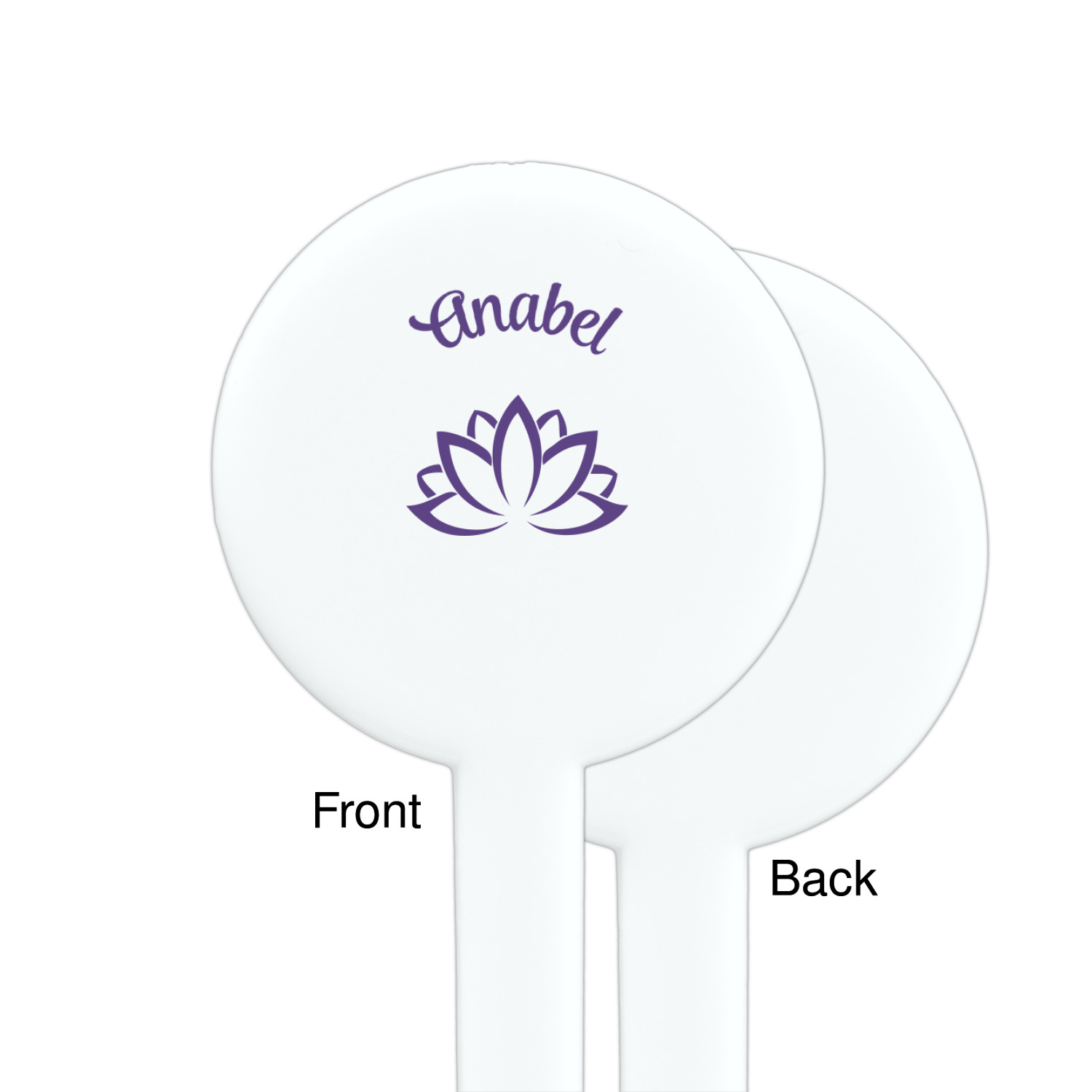 A purple scalloped label highlights a classic personalized monogram or the personalization of your choice.