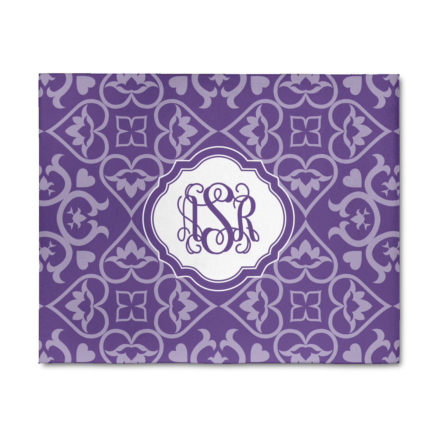 A purple scalloped label highlights a classic personalized monogram or the personalization of your choice.