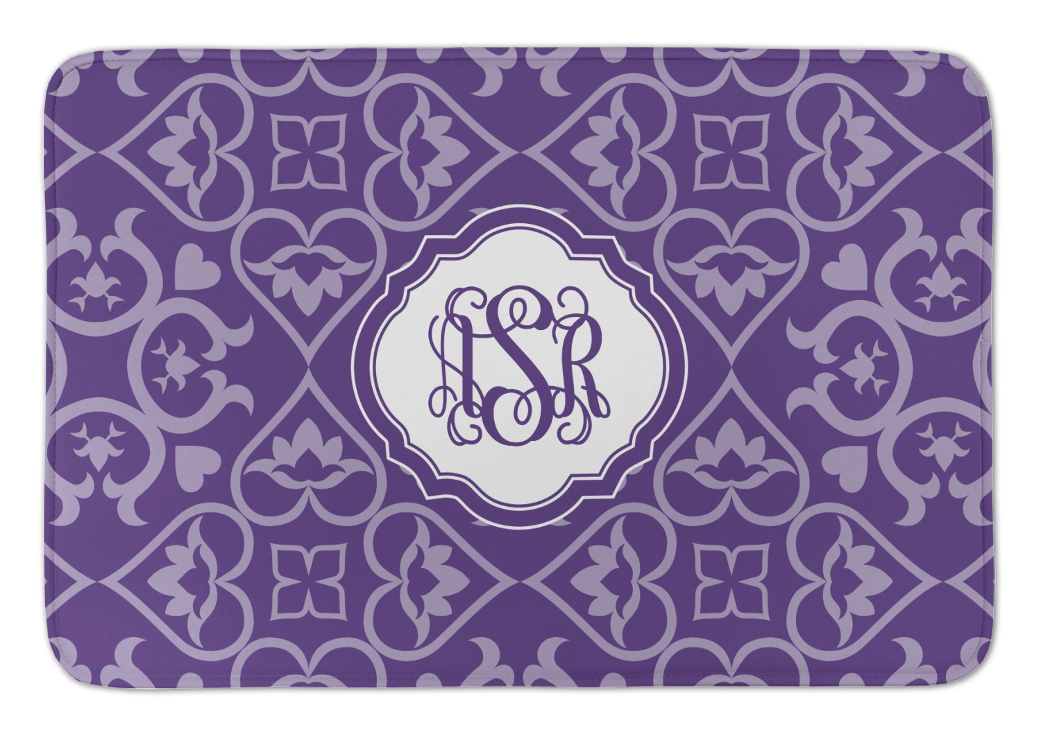 A purple scalloped label highlights a classic personalized monogram or the personalization of your choice.