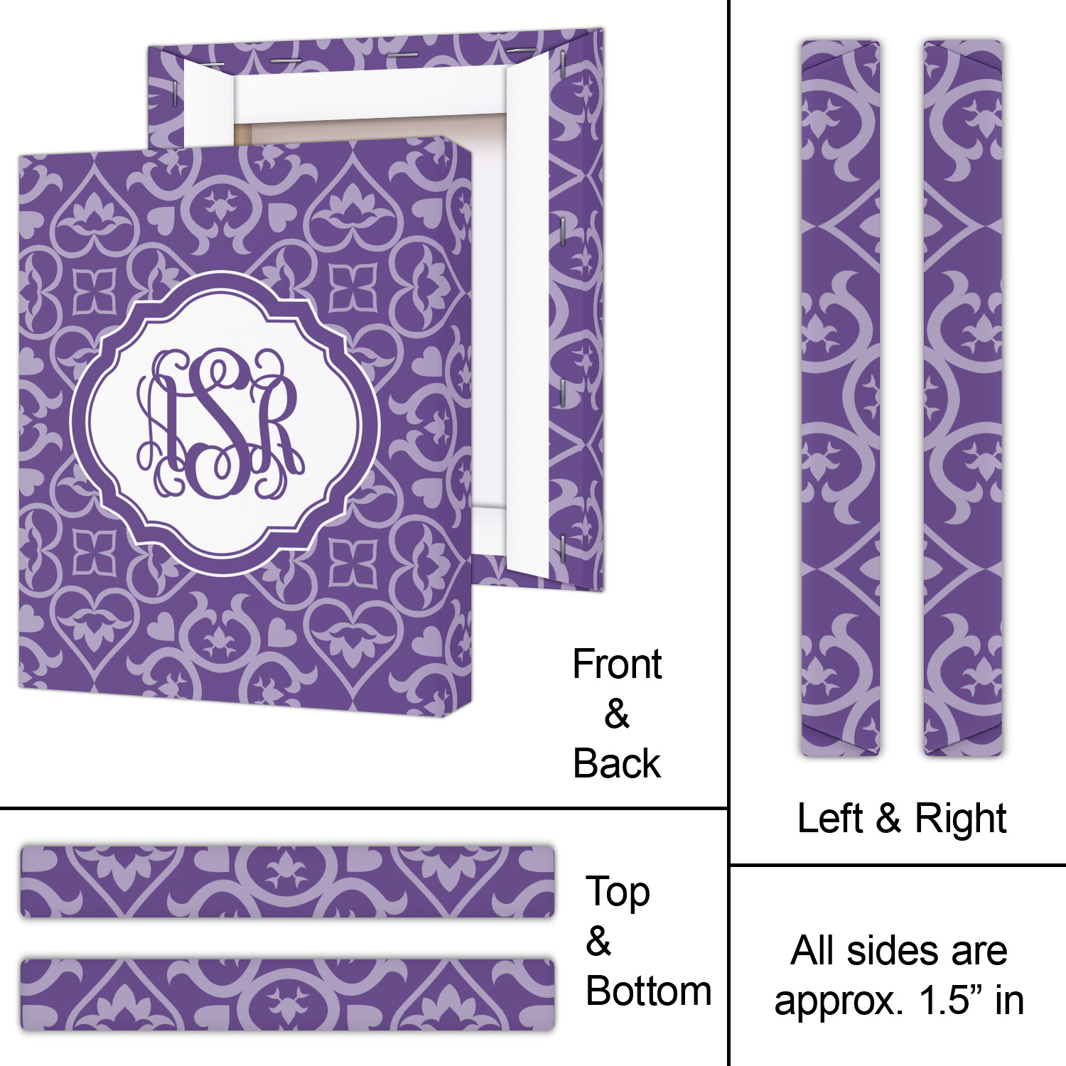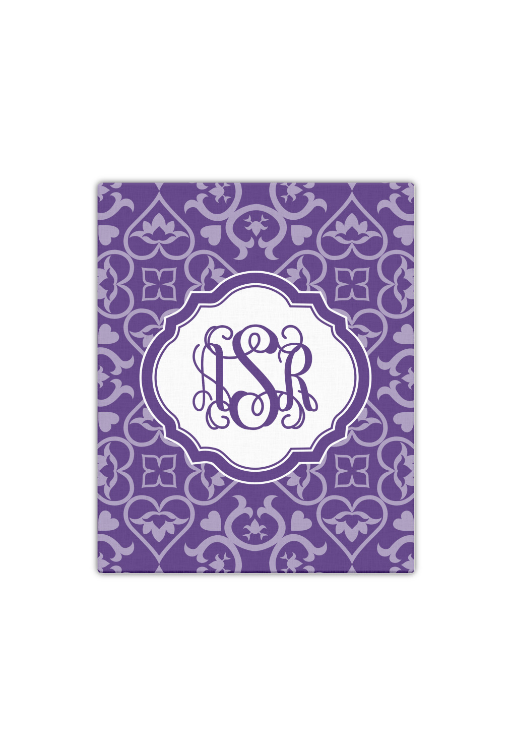 A purple scalloped label highlights a classic personalized monogram or the personalization of your choice.