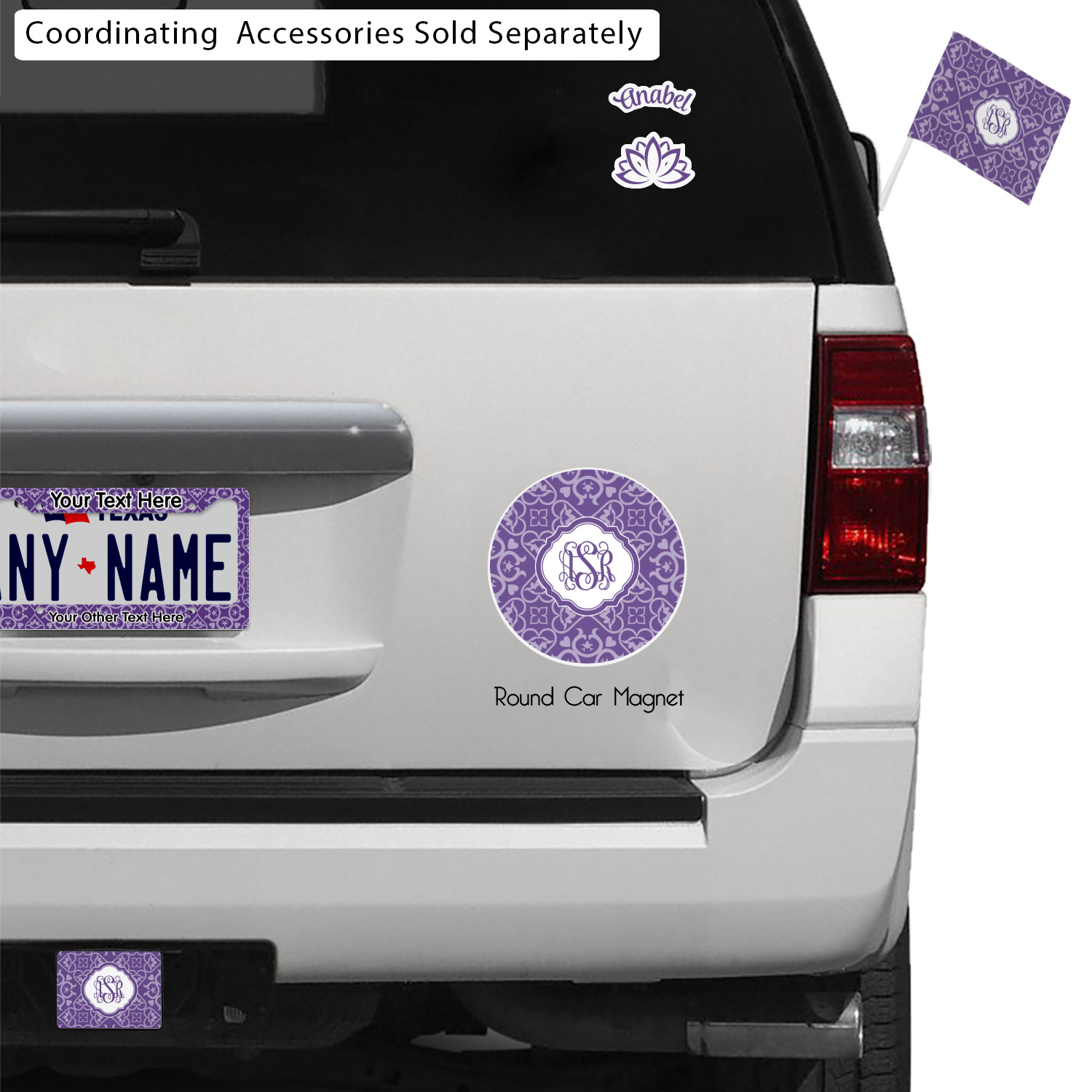 A purple scalloped label highlights a classic personalized monogram or the personalization of your choice.
