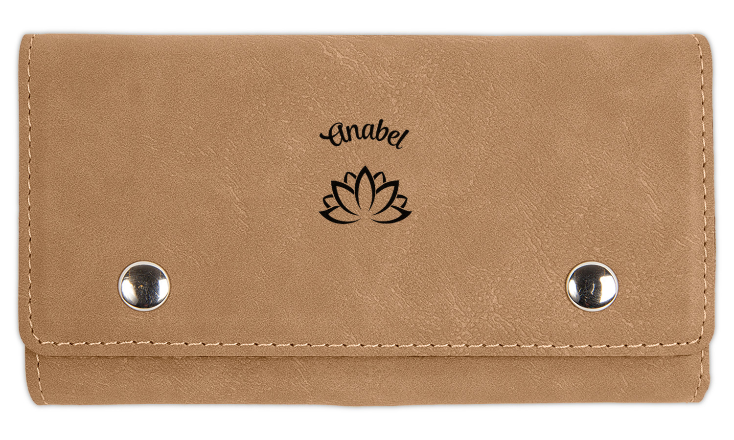 A purple scalloped label highlights a classic personalized monogram or the personalization of your choice.