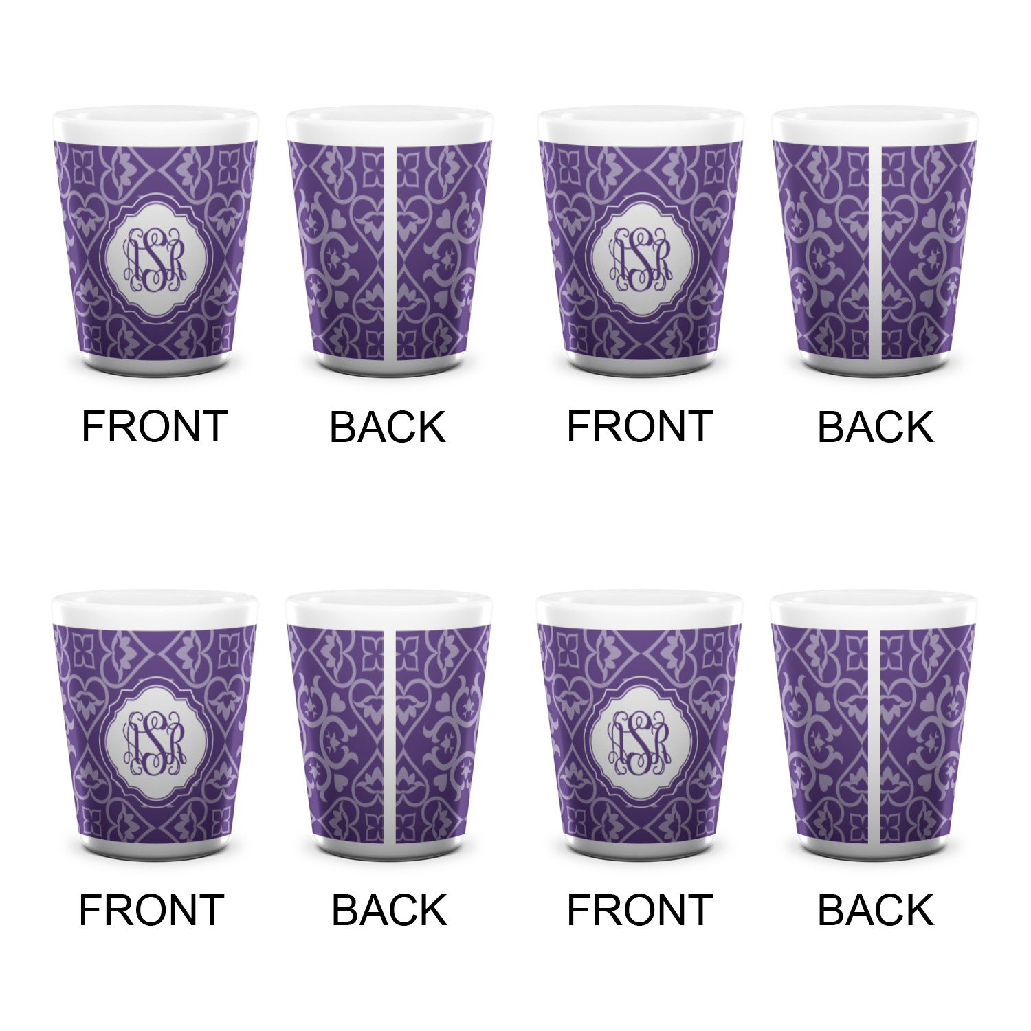 A purple scalloped label highlights a classic personalized monogram or the personalization of your choice.