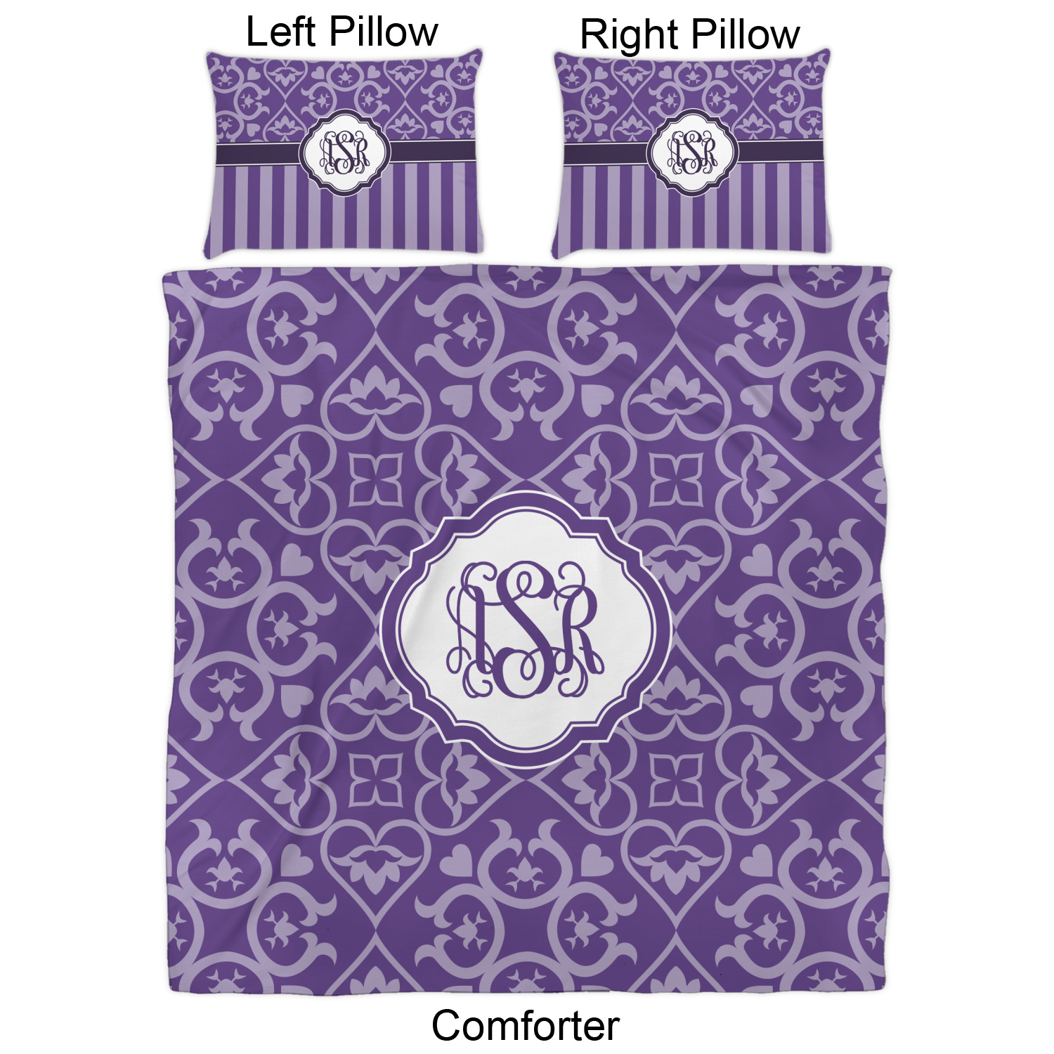 We have hundreds of different design templates for you to choose from Each design can be customized to your exact specifications. Not only can you customize the comforter, but you can also customize each pillow sham e.g. for a queen comforter set you have have Mr & Mrs pillow shams with the last name on comforter.