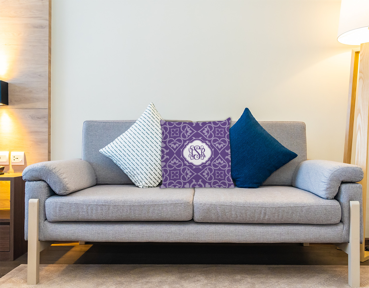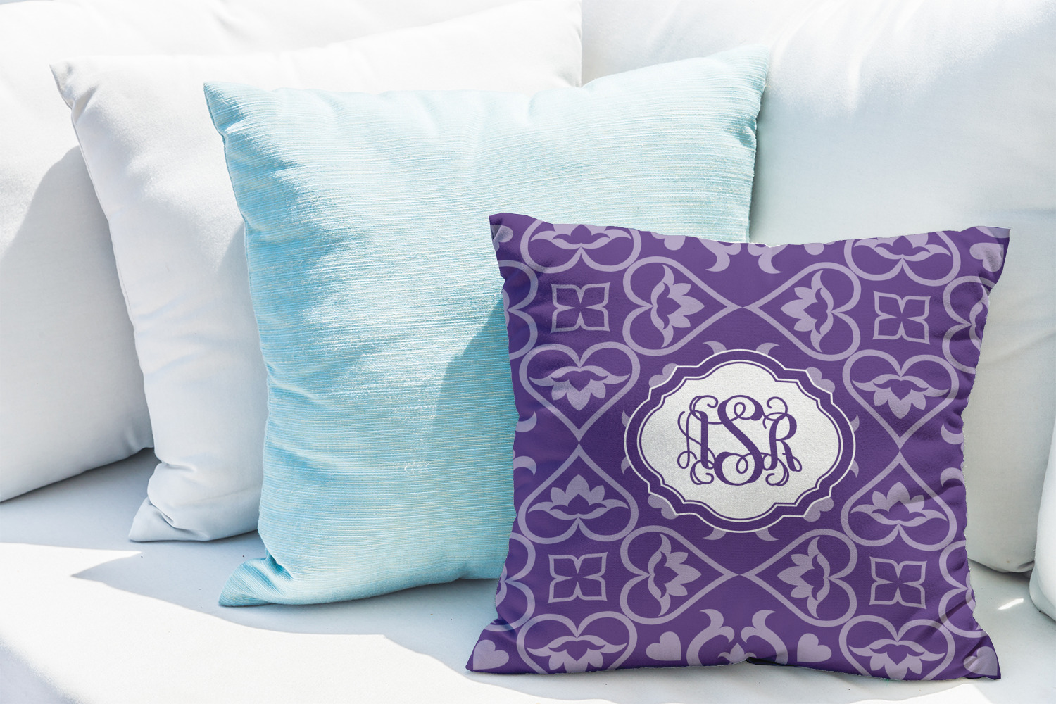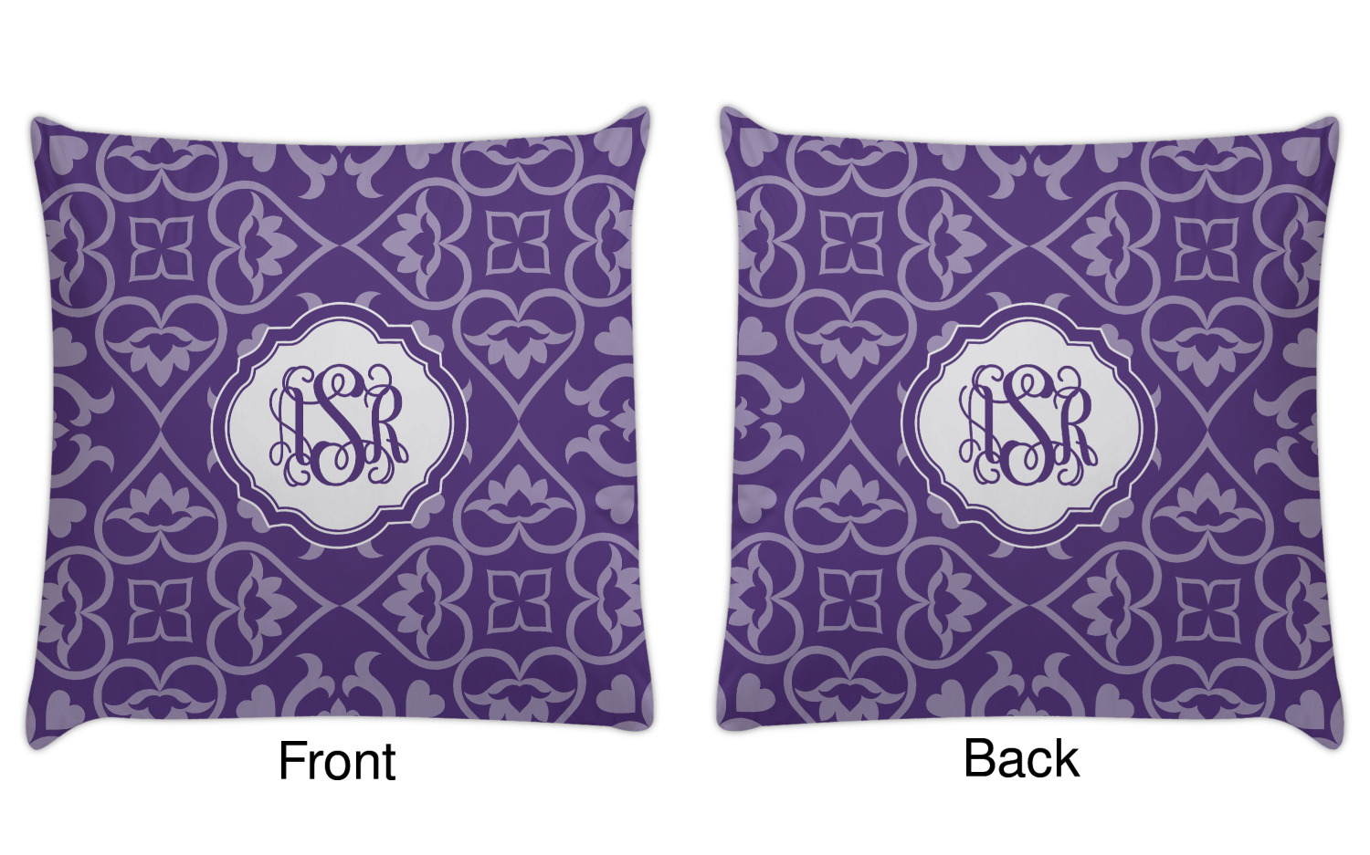 A purple scalloped label highlights a classic personalized monogram or the personalization of your choice.