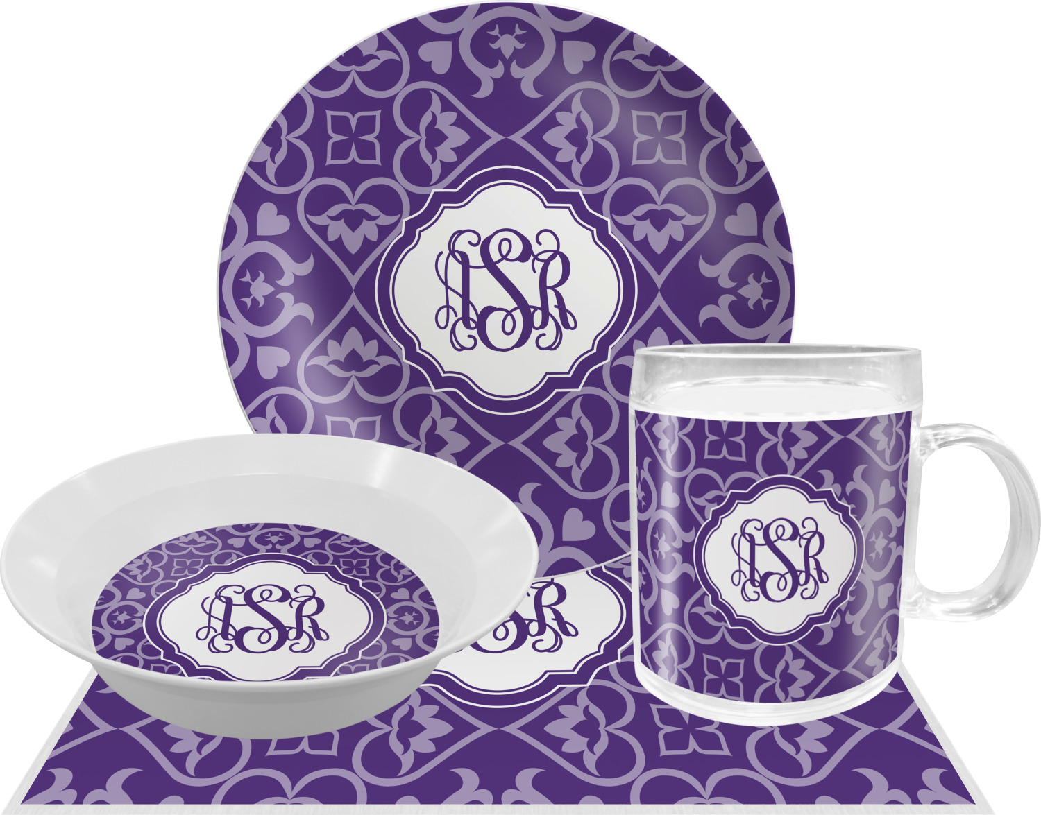 A purple scalloped label highlights a classic personalized monogram or the personalization of your choice.