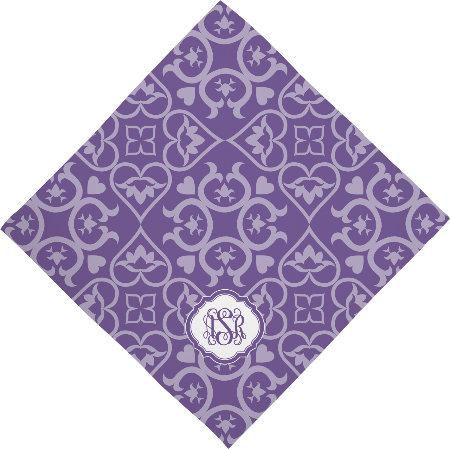 This beautiful pet bandana really is the perfect accessory. It is made from a silky feeling polyester and measures at approximately 23" x 23". Your personalization will be printed on a diagonal, so that you are able to read the personalization when folded into a triangle. This bandana fits best on large dogs, but can be folded smaller if there is no personalized text to fit smaller pets.