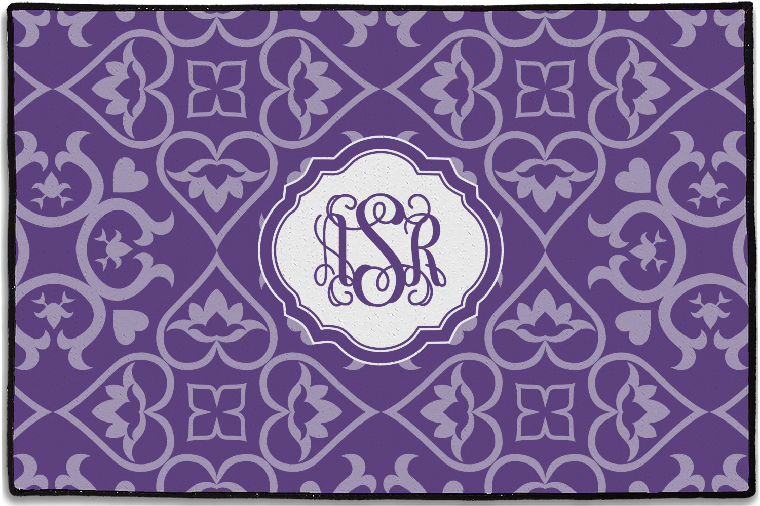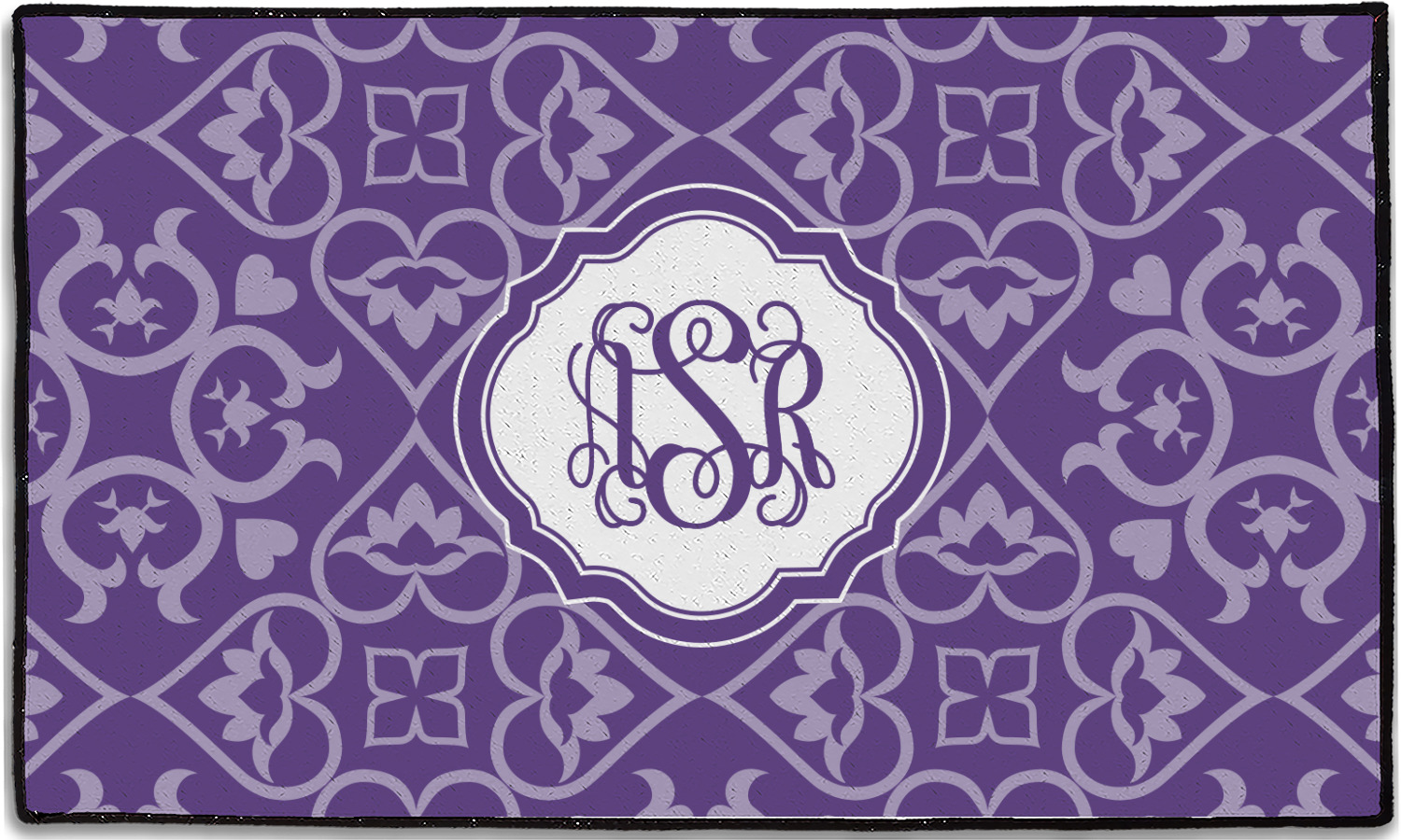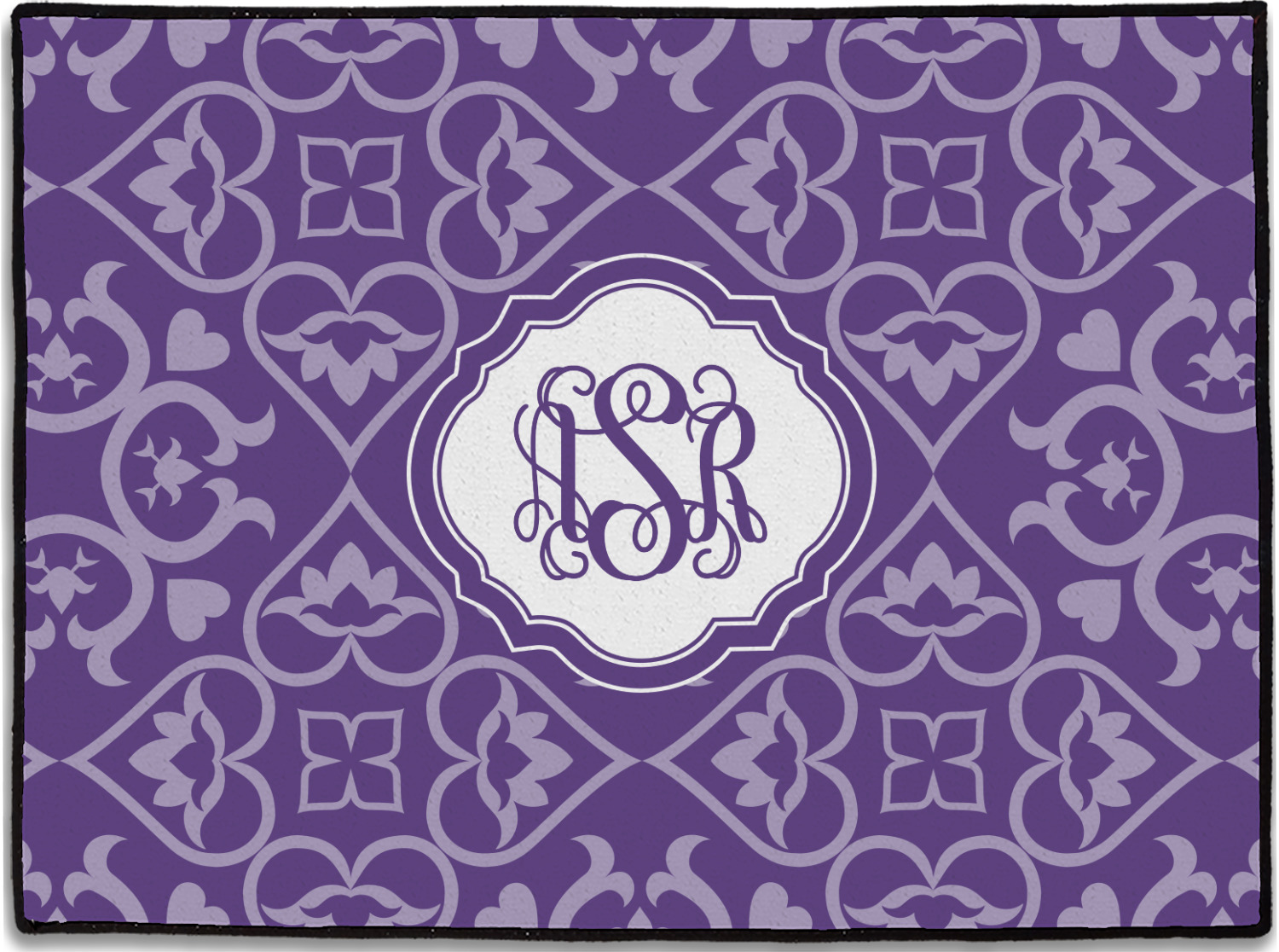 A purple scalloped label highlights a classic personalized monogram or the personalization of your choice.