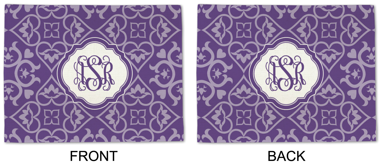 A purple scalloped label highlights a classic personalized monogram or the personalization of your choice.