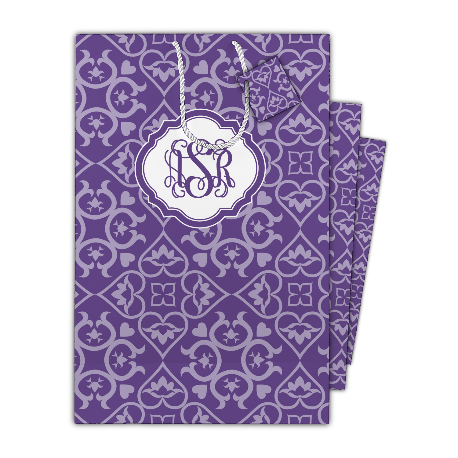 A purple scalloped label highlights a classic personalized monogram or the personalization of your choice.