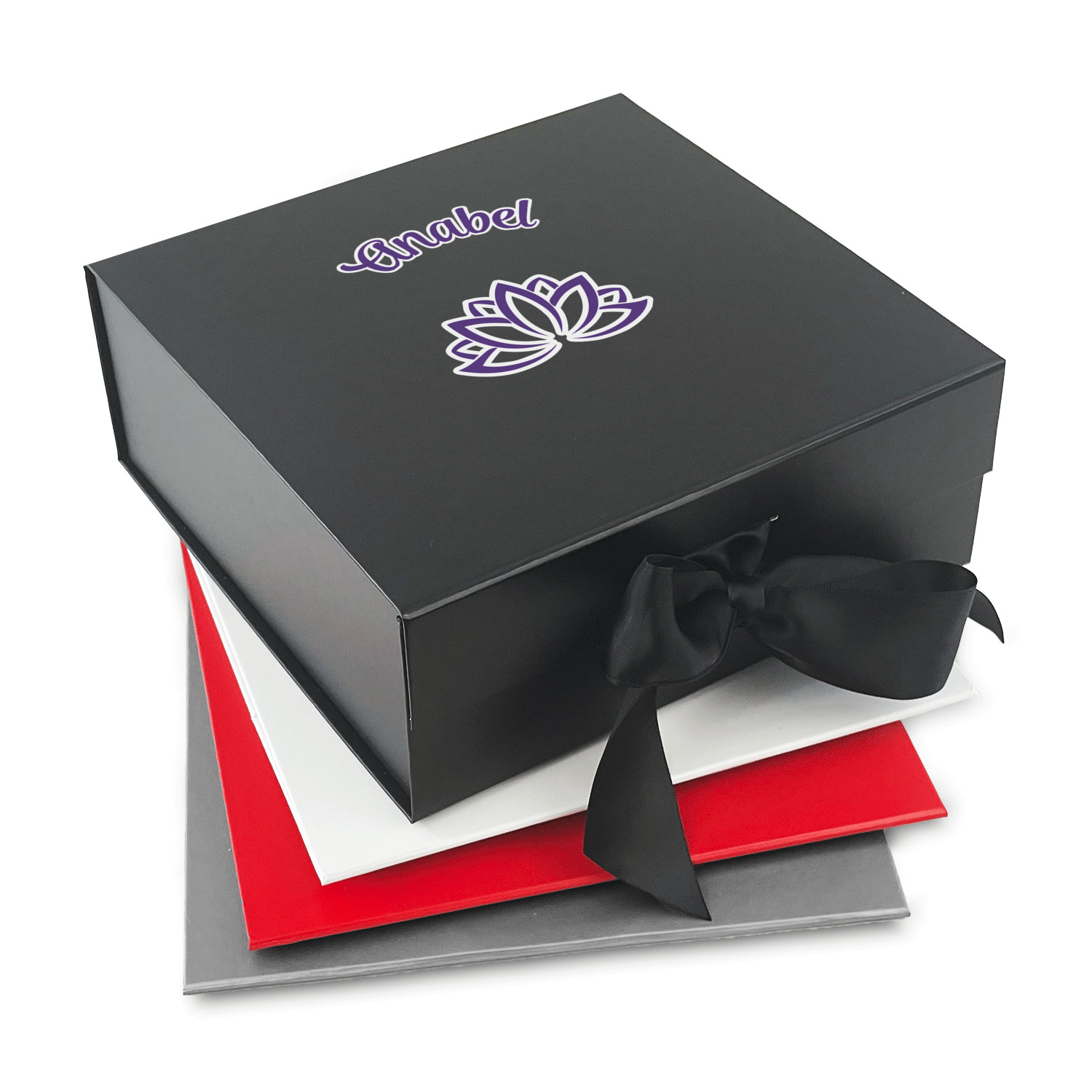 Design your own using our design library and we will print your artwork onto the lid of the gift box. When the box is closed the ribbons can be tied to secure the lid and add to the elegant look of these gift boxes.