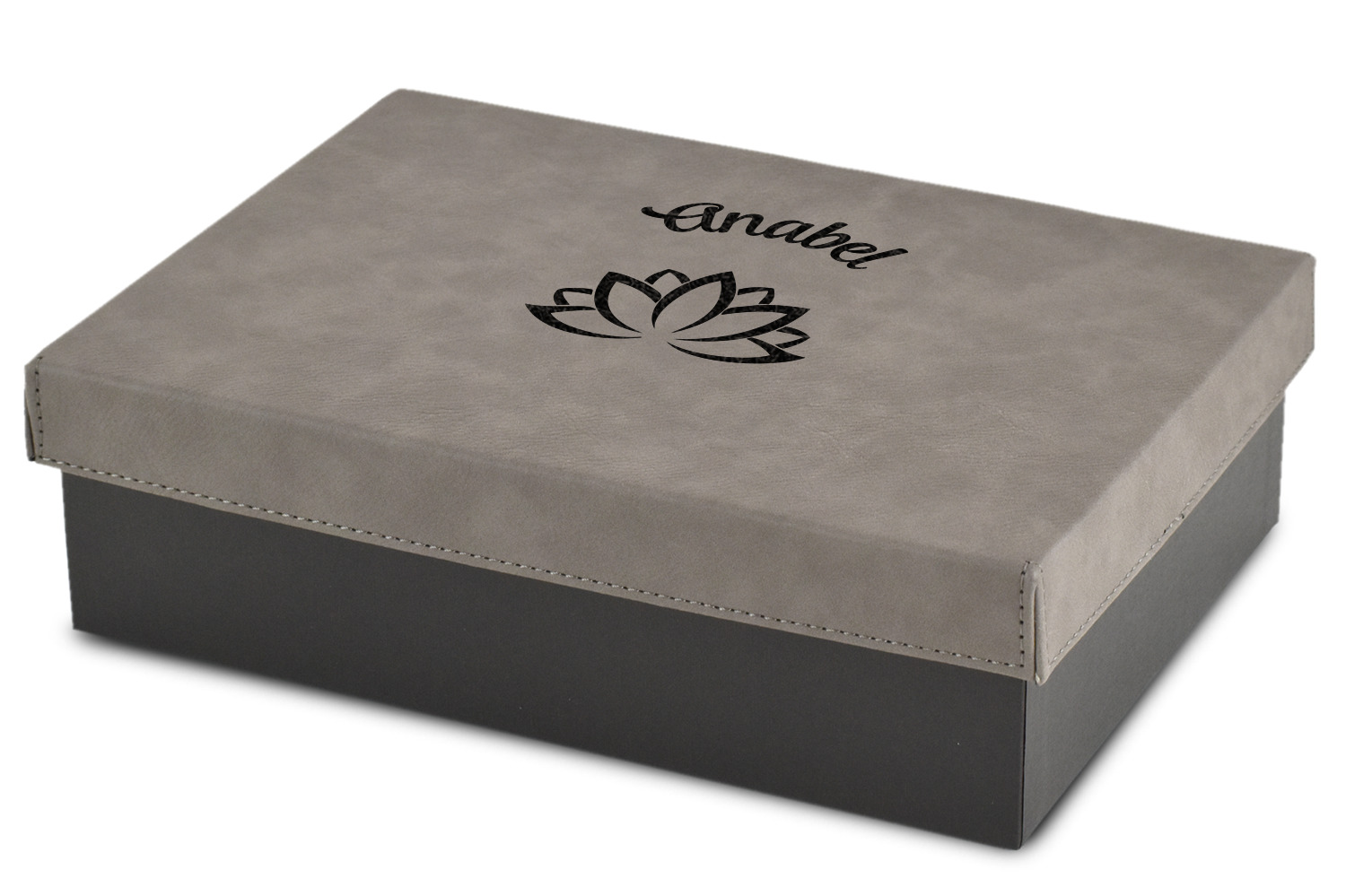 These gift boxes are available in 3 different sizes to accommodate various sized gifts. Available in gray as a neutral color for any occasion as well as to showcase your design boldly. Engraved with a laser this high quality paper board and faux leather gift box is unique and makes any gift stand out.