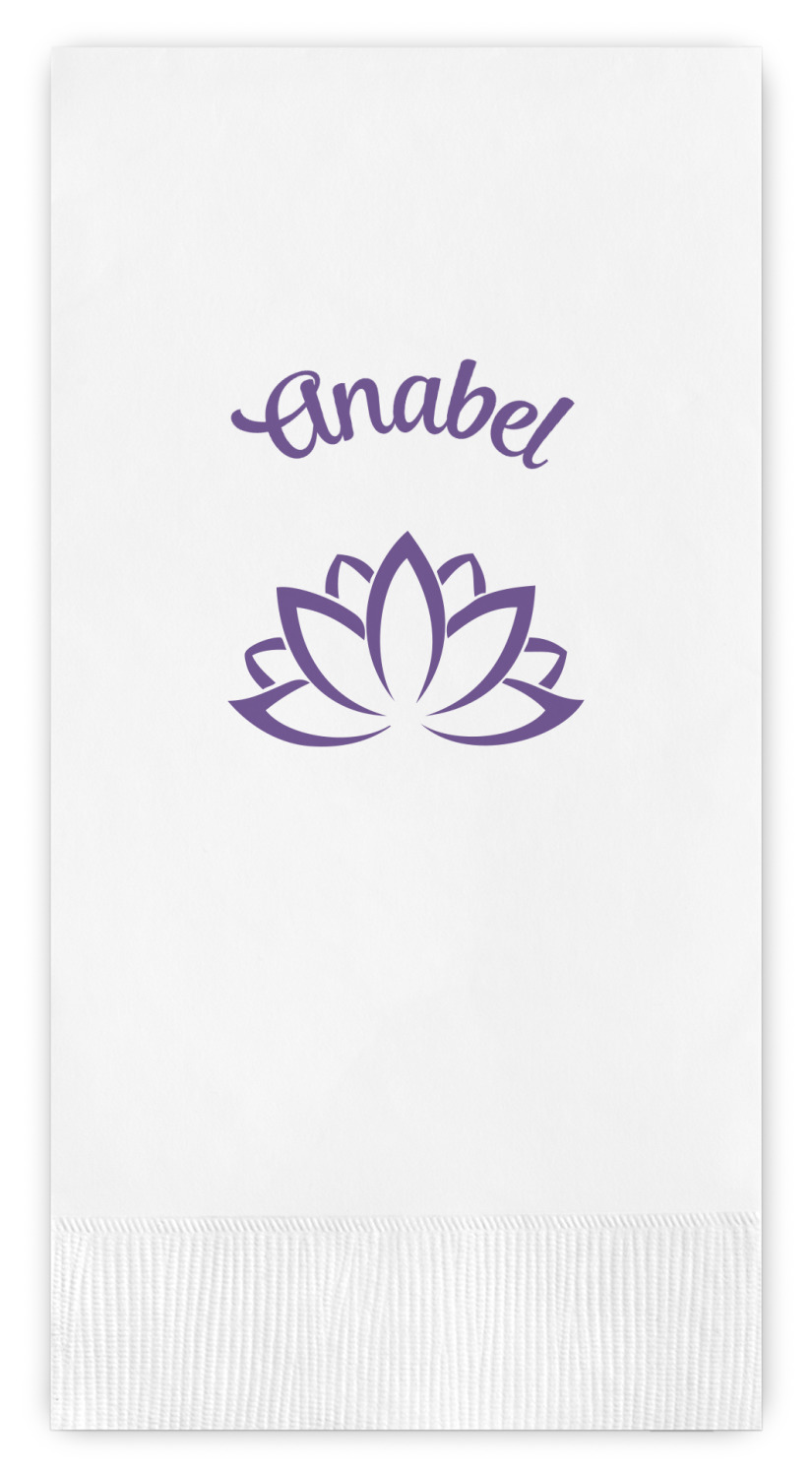 A purple scalloped label highlights a classic personalized monogram or the personalization of your choice.