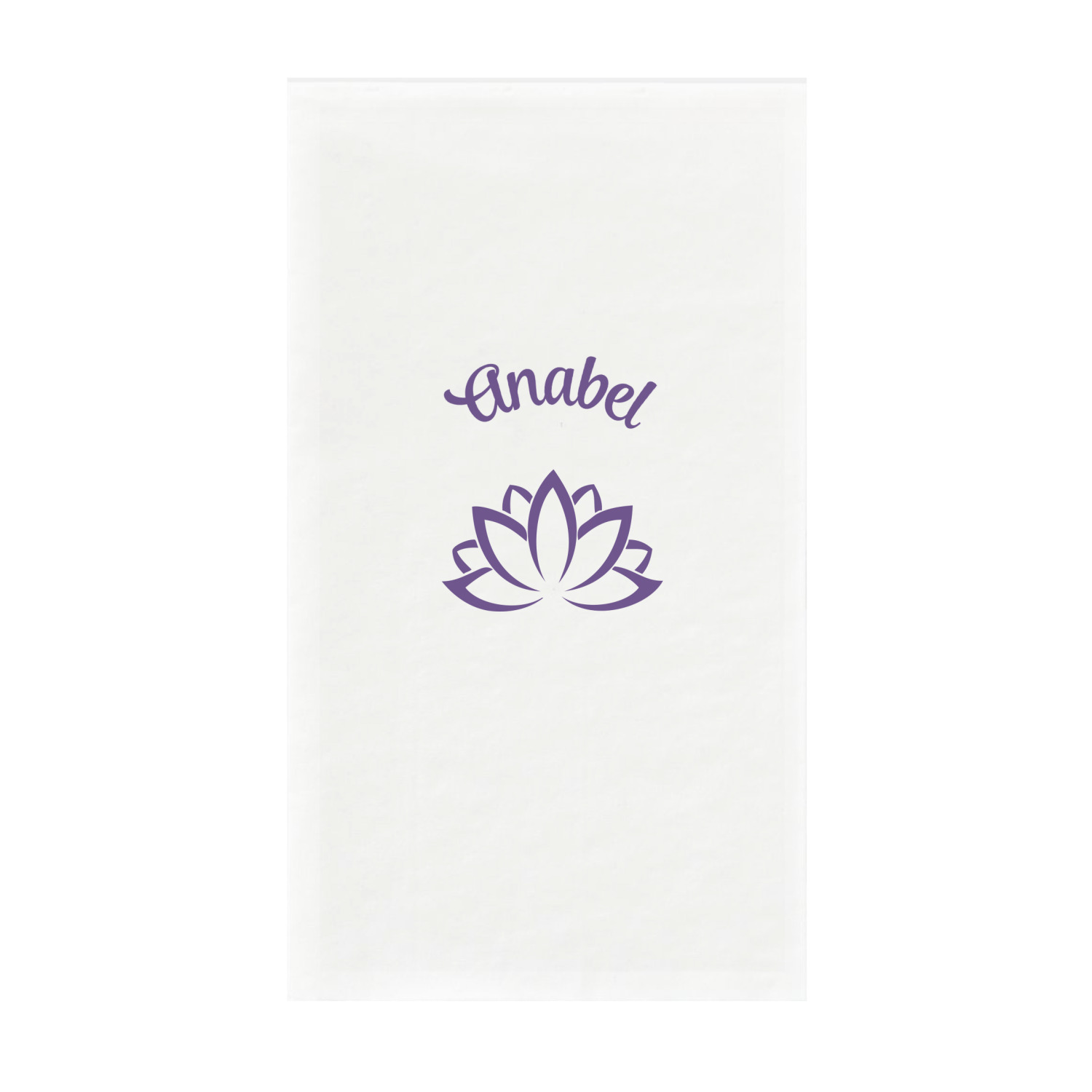A purple scalloped label highlights a classic personalized monogram or the personalization of your choice.
