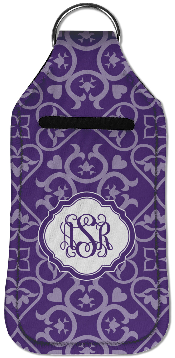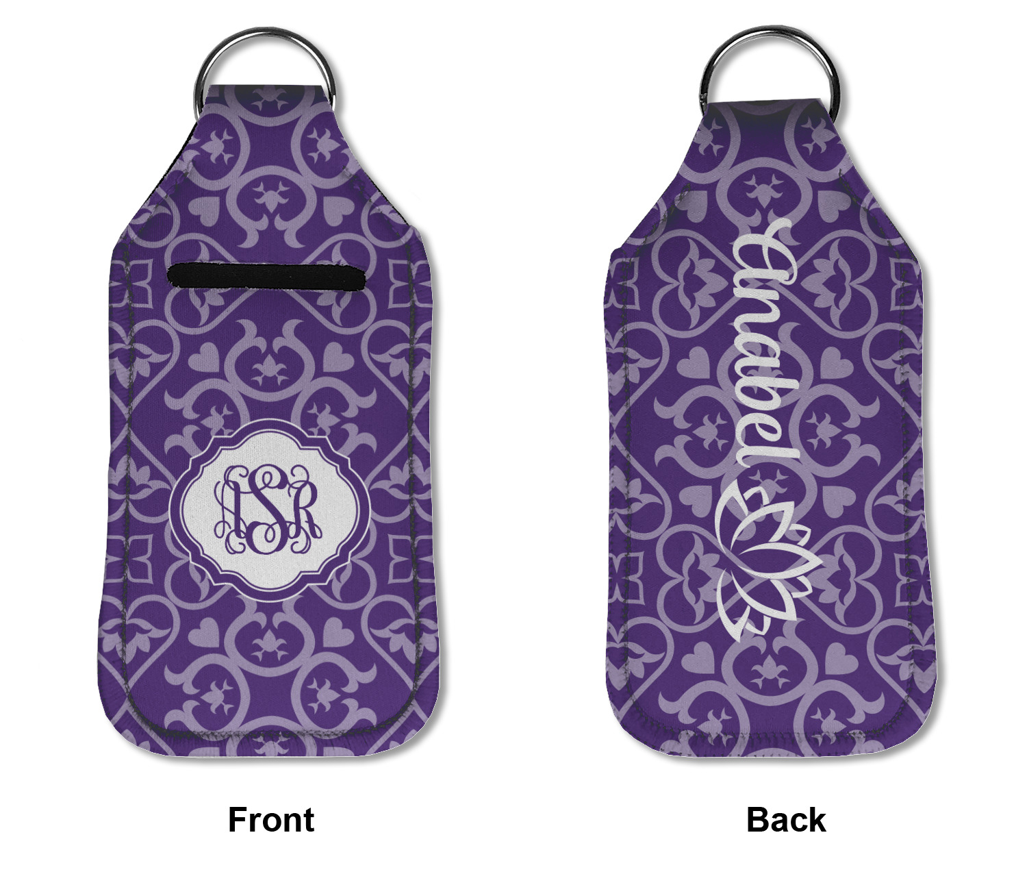 Each hand sanitizer holder comes with its own empty travel-sized, refillable hand sanitizer sure to fit snug in your customized sanitizer case! Our hand sanitizer cases are a durable, yet soft neoprene material sure to last any daily activities or travel agenda. Customize and personalize a hand sanitizer bottle holder with one of our two sizes - small (4.25" x 2.25") or large (5.5" x 2.5"). Each travel sanitizer holder comes with a keyring for attachment on bags, keys, or more!