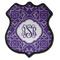 A purple scalloped label highlights a classic personalized monogram or the personalization of your choice.