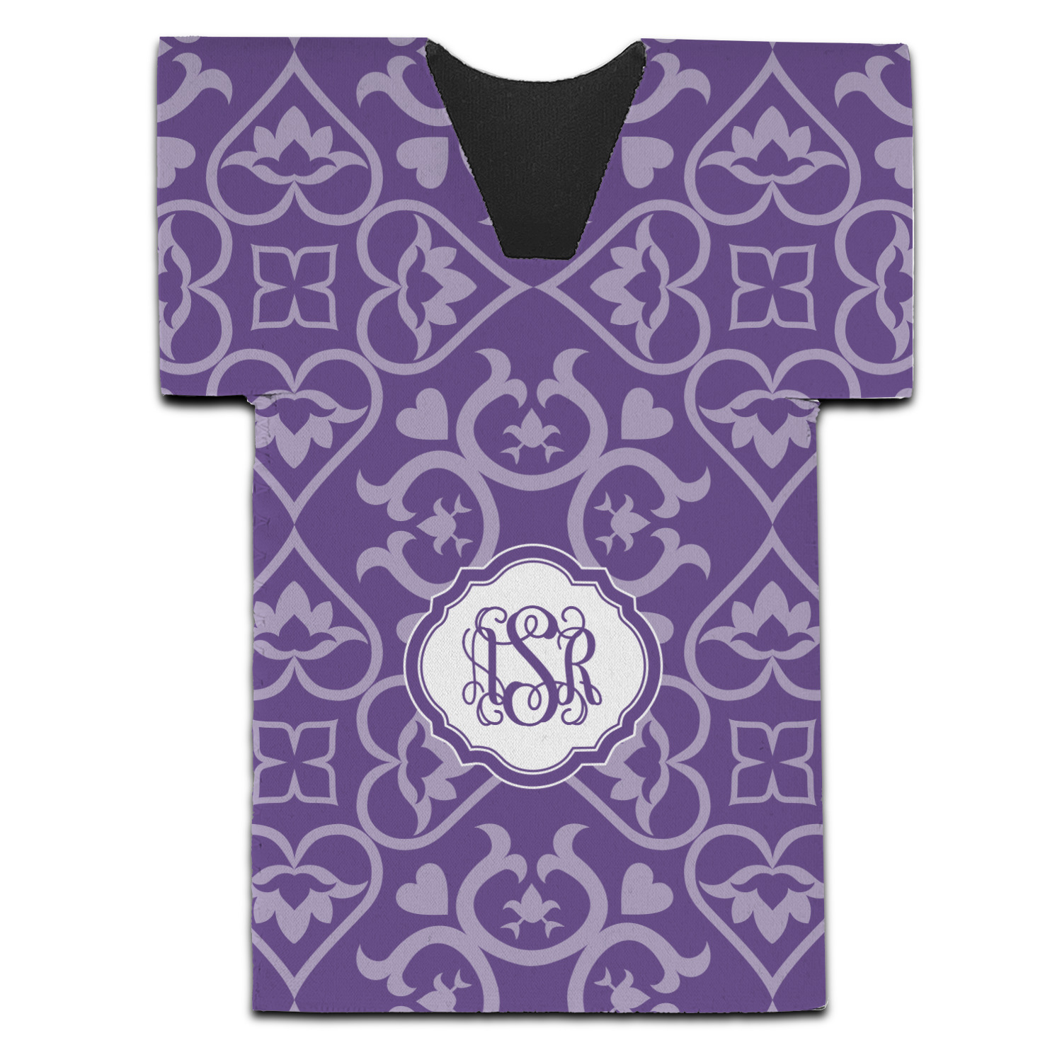 A purple scalloped label highlights a classic personalized monogram or the personalization of your choice.
