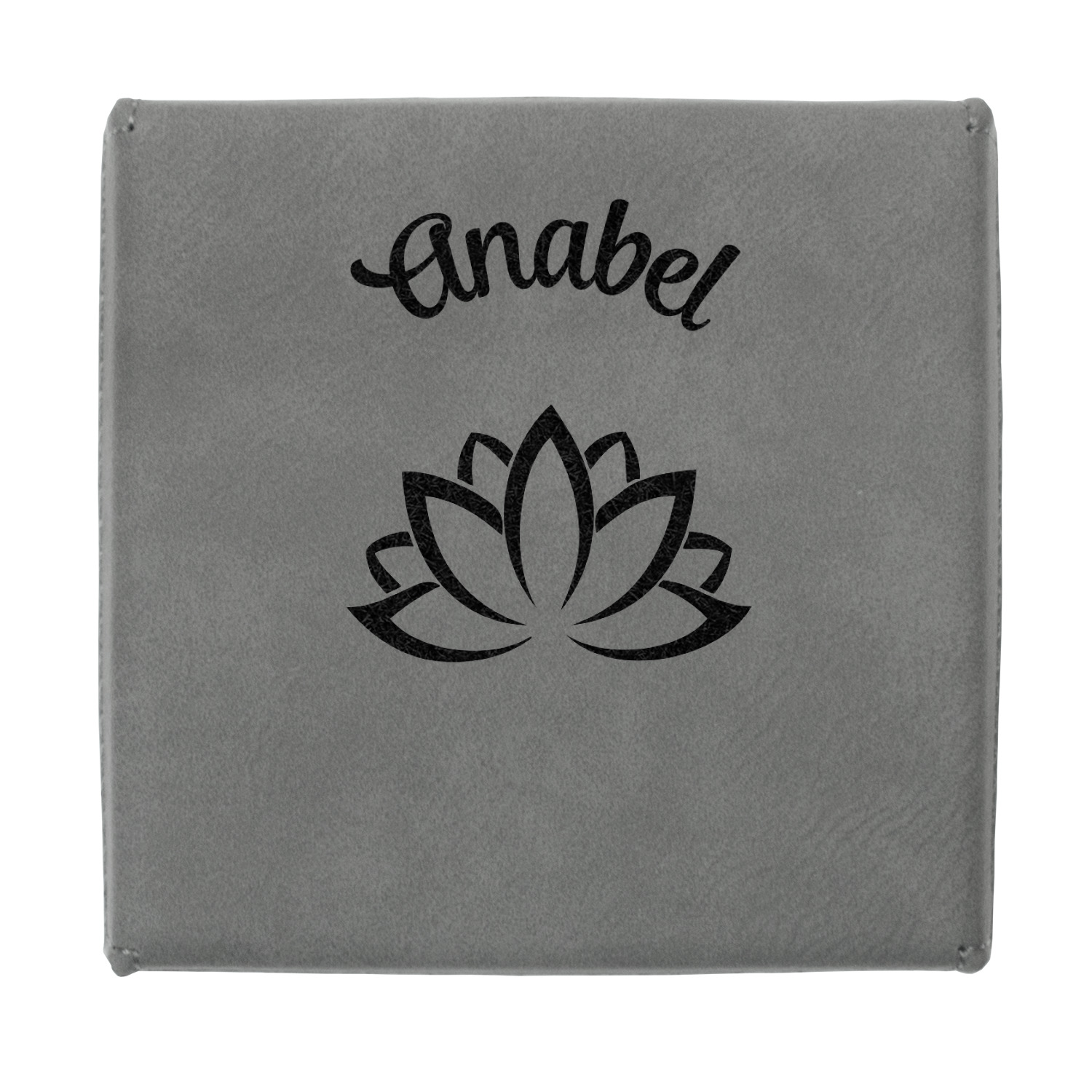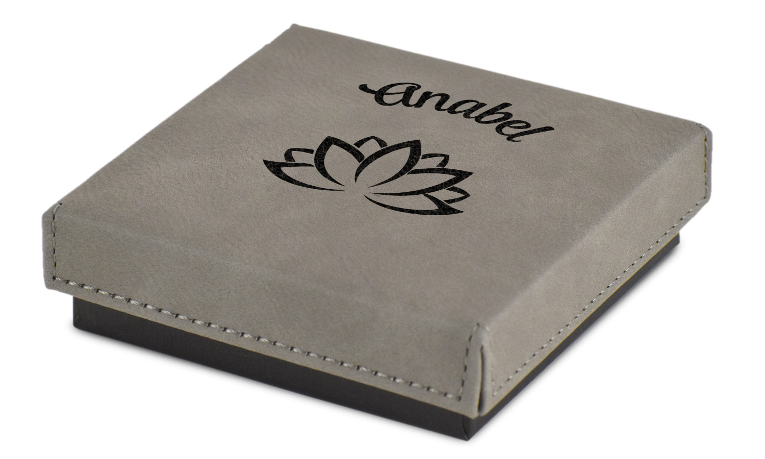 This jewelry gift box measures 3.5 inches long by 3.5 inches wide, and 1 inch deep. The box fits different sized jewelry items such as bracelets, necklaces, watches, earrings, rings and more. Engraved with a laser this high quality paper board and faux leather jewelry gift box is unique and makes any gift stand out.