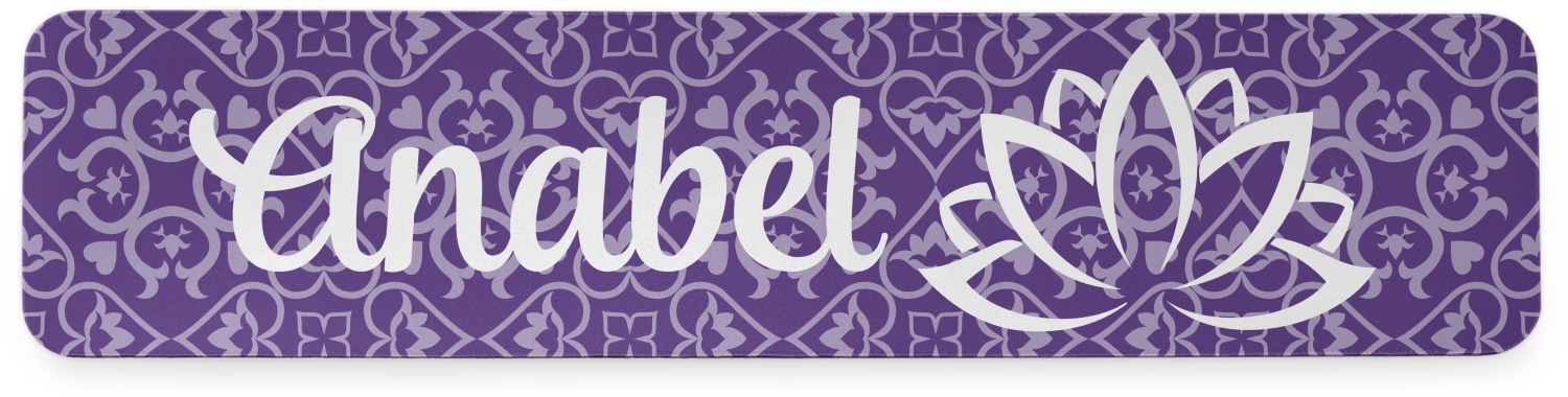 A purple scalloped label highlights a classic personalized monogram or the personalization of your choice.