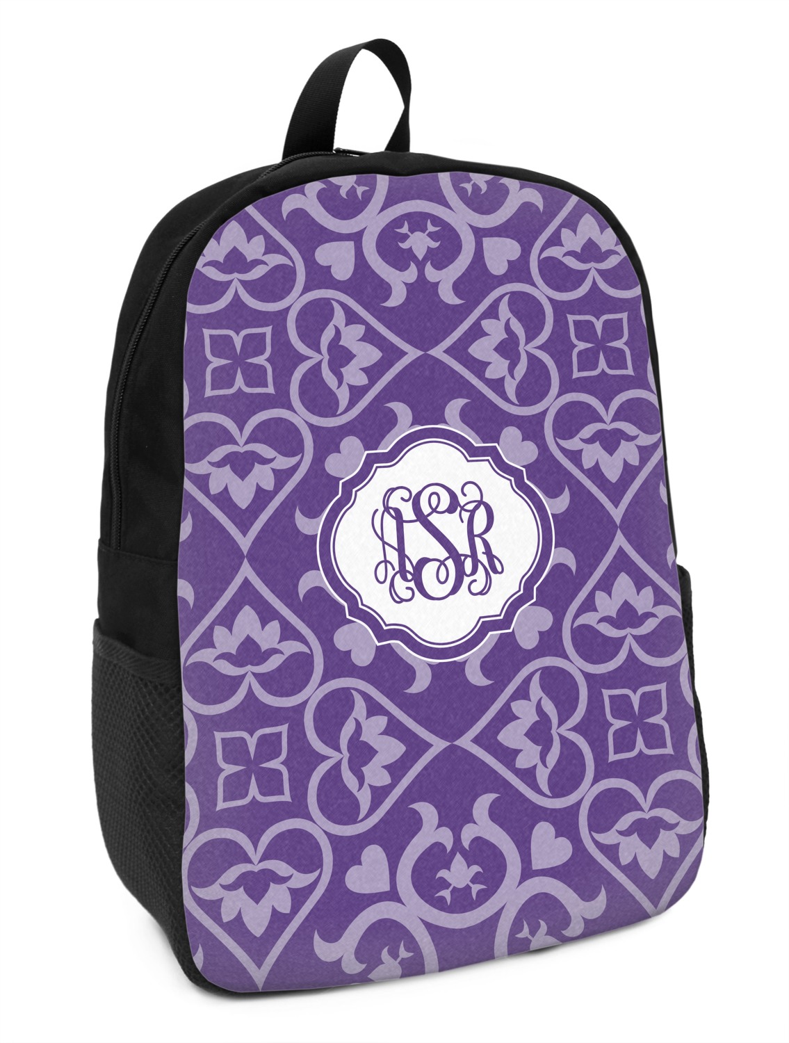 A purple scalloped label highlights a classic personalized monogram or the personalization of your choice.