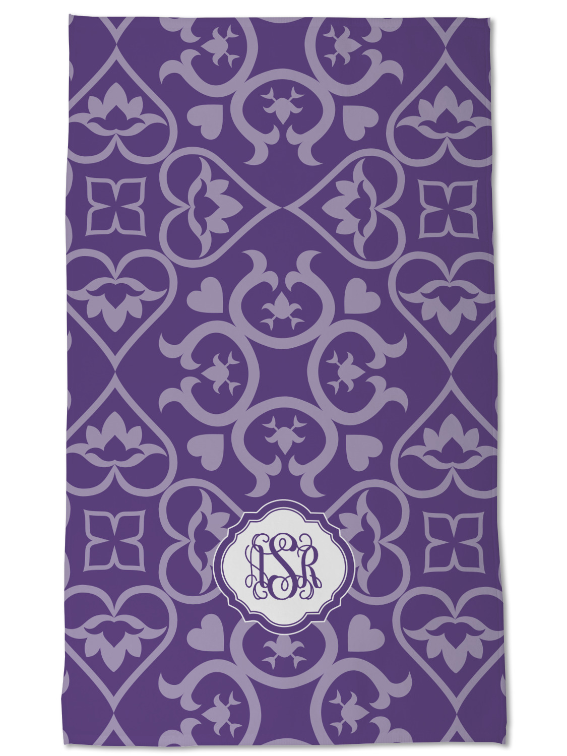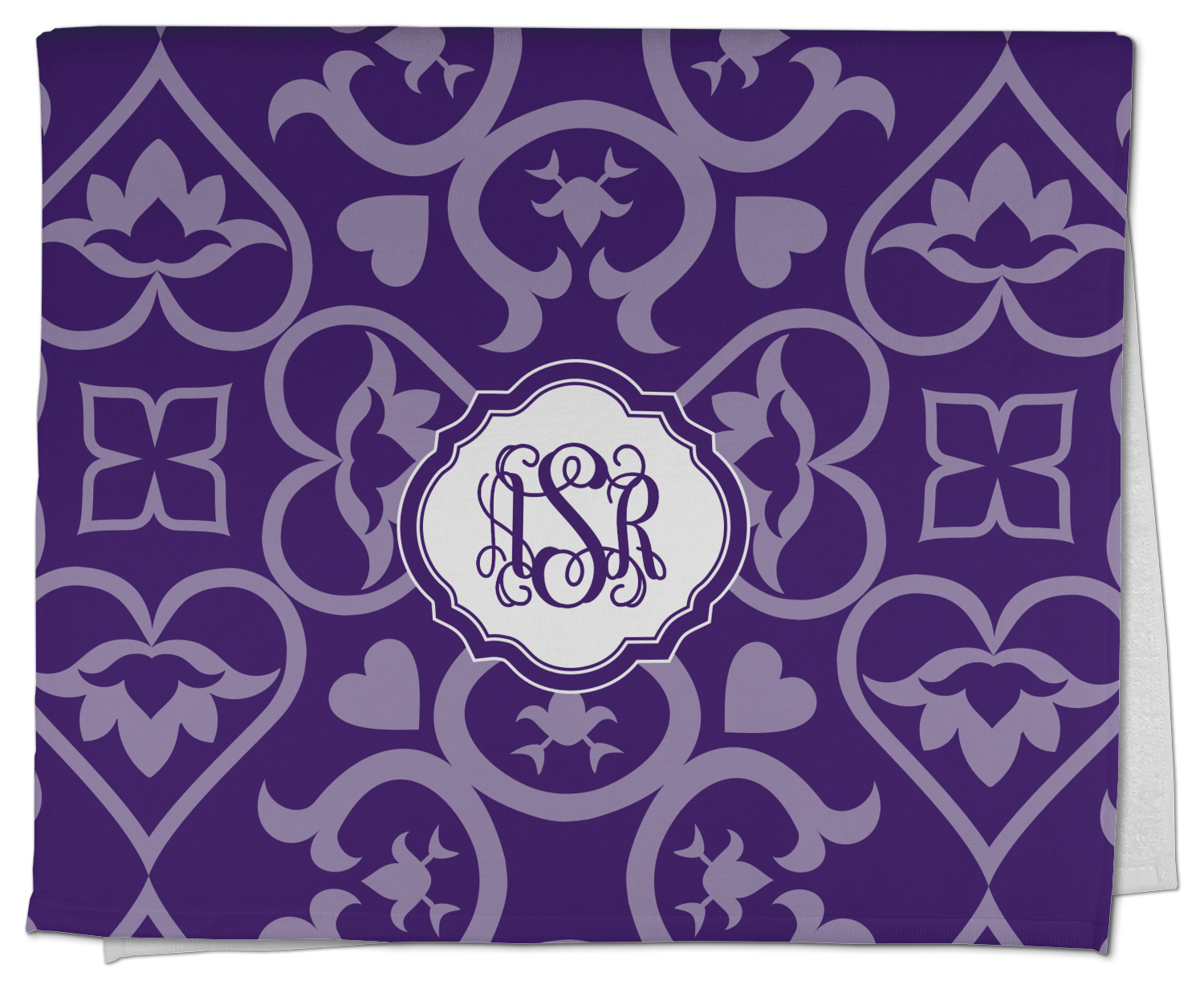 A purple scalloped label highlights a classic personalized monogram or the personalization of your choice.