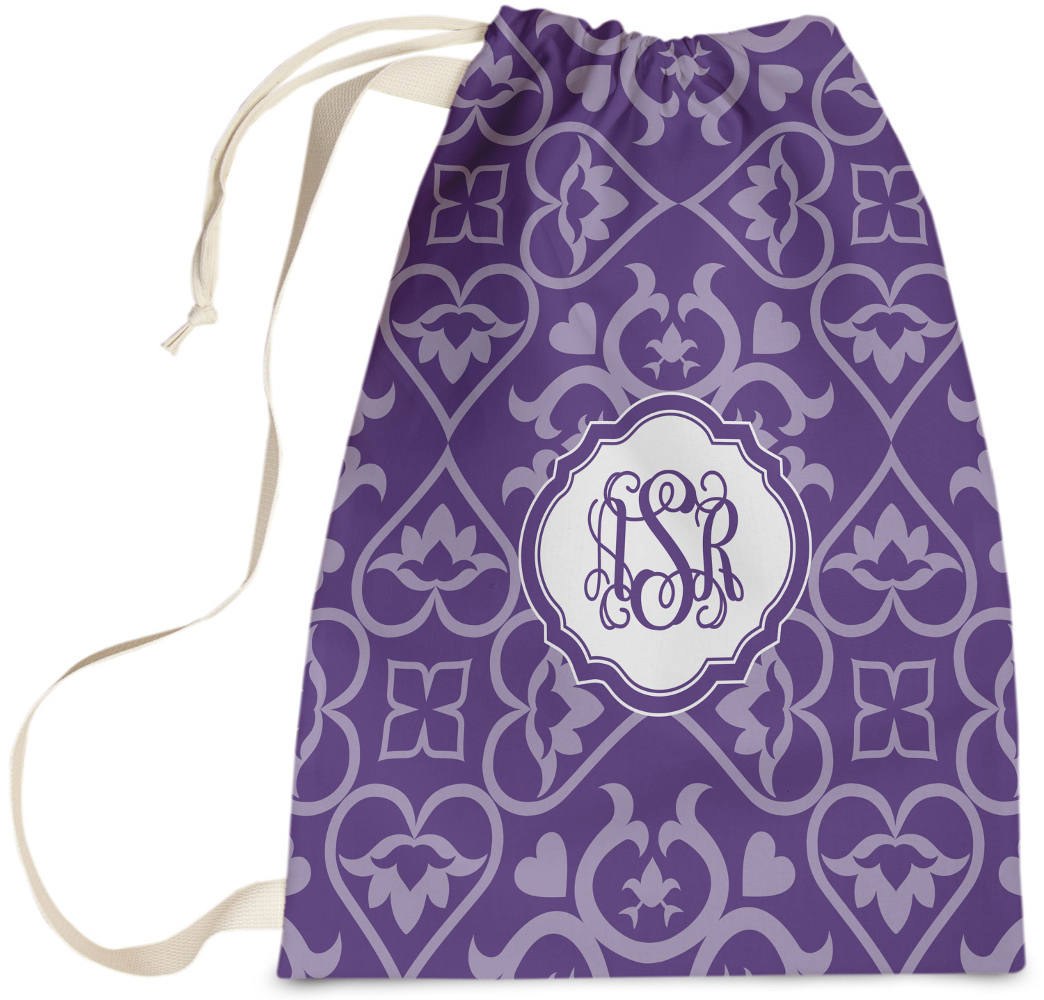 Carry your laundry in style with these customized laundry bags. Available in two sizes, featuring a natural colored woven strap and a cinch cord, these bags hold a lot of clothes or anything else you want to fit in them.
