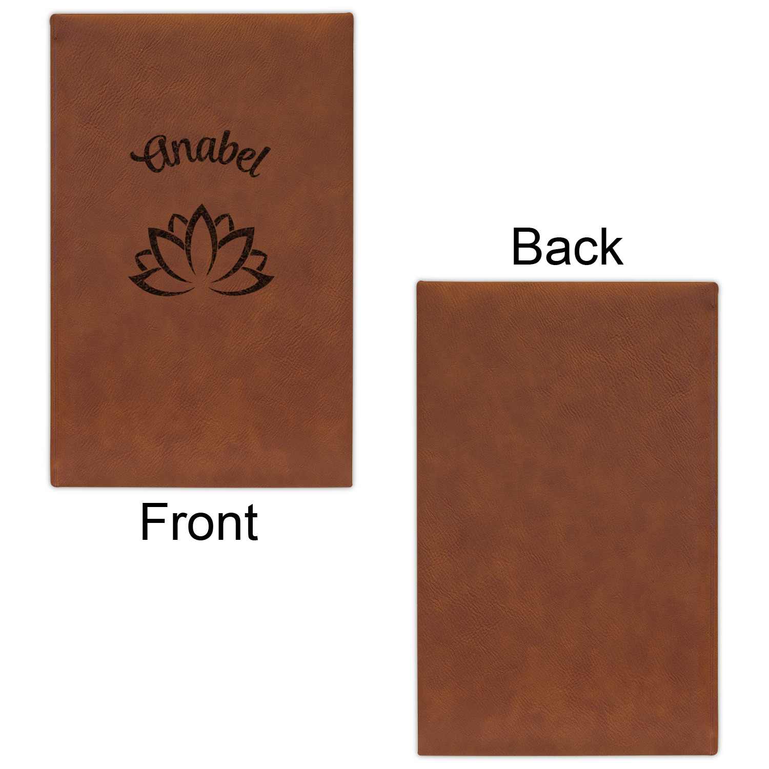 Available in two sizes - small at 8.25" x 5.25" and large at 9.75" x 7", these journal are the ideal size for purses and backpacks alike. Your personalized design is precisely laser engraved onto either the front, or the front and back of your new custom journal.