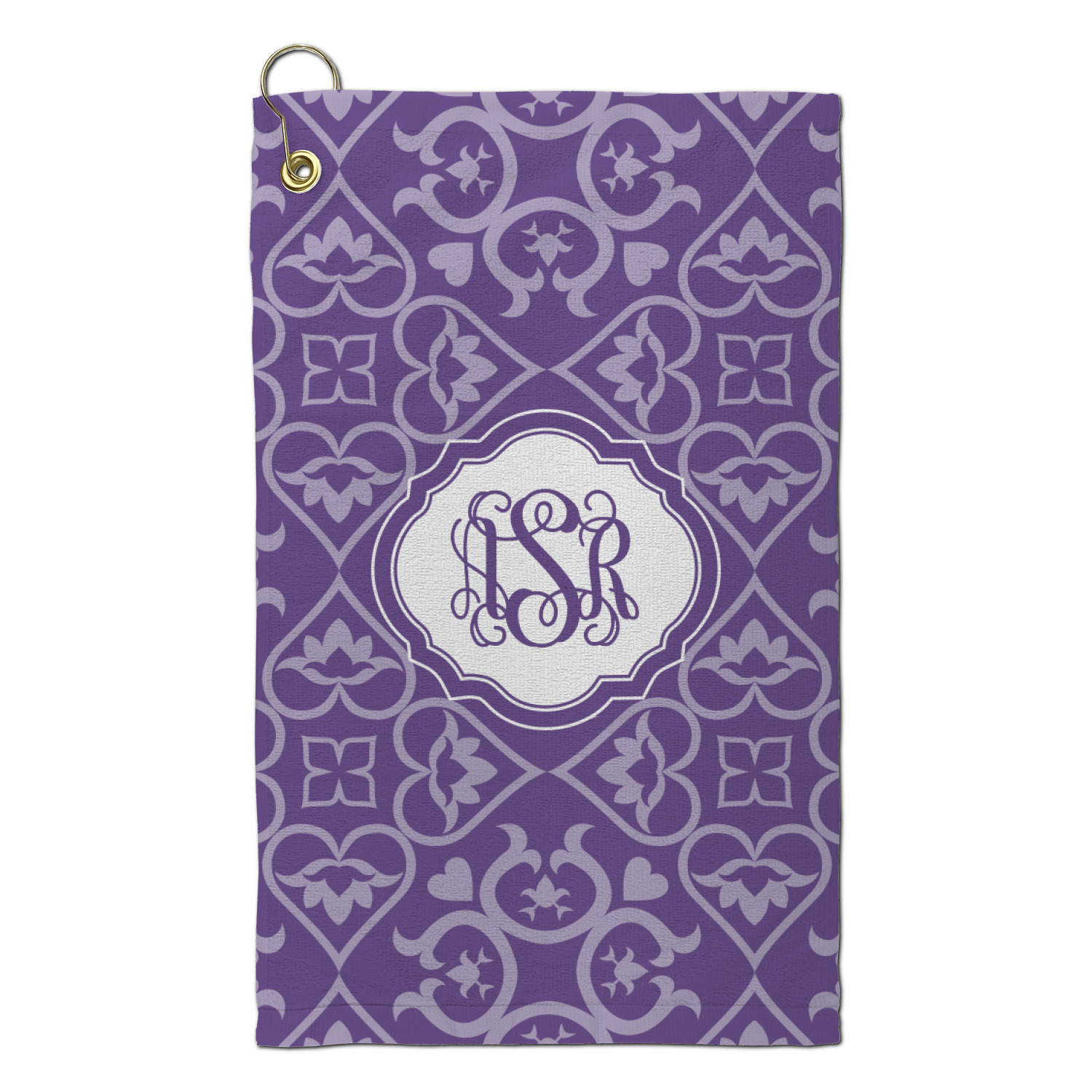 A purple scalloped label highlights a classic personalized monogram or the personalization of your choice.