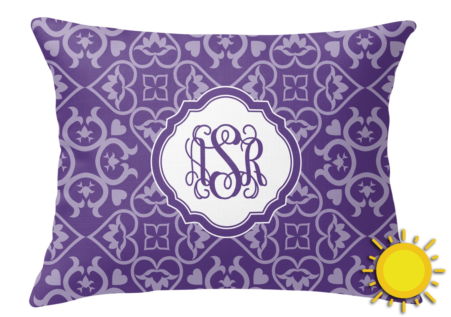 A purple scalloped label highlights a classic personalized monogram or the personalization of your choice.