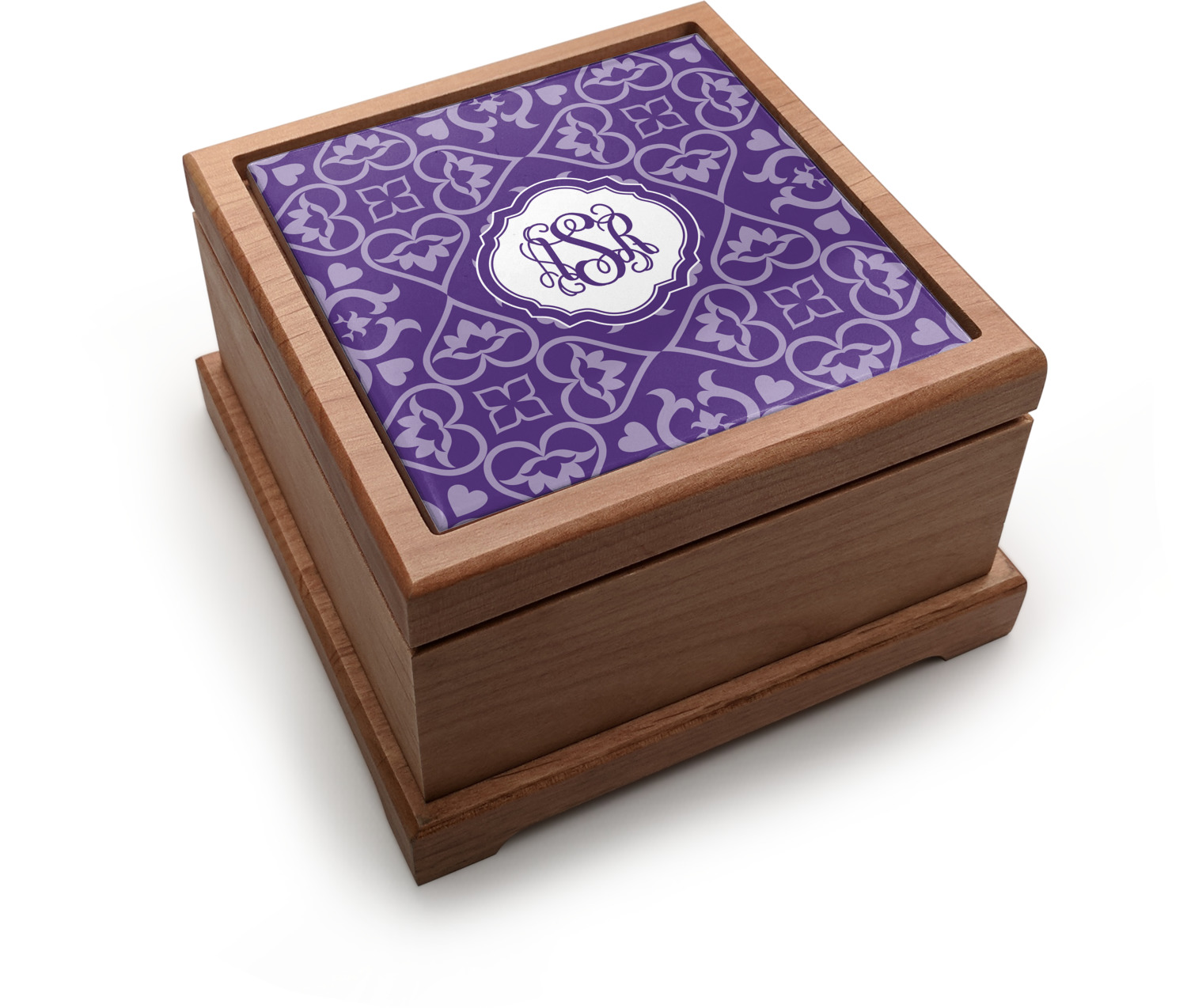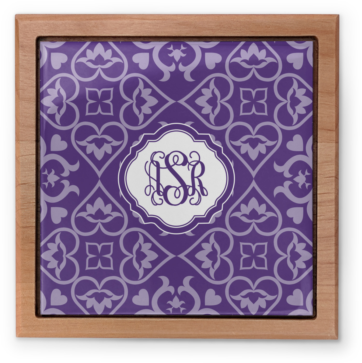 A purple scalloped label highlights a classic personalized monogram or the personalization of your choice.