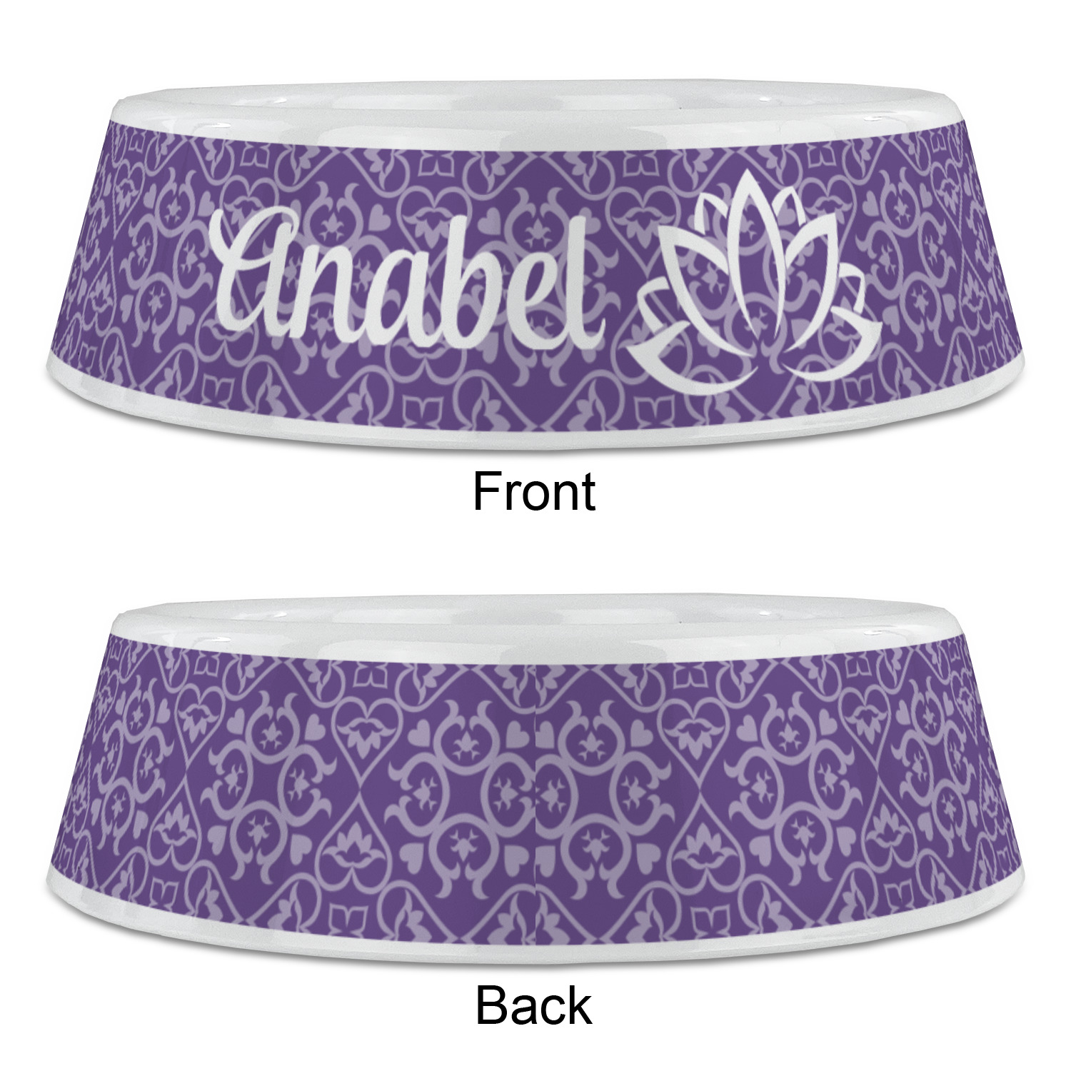 A purple scalloped label highlights a classic personalized monogram or the personalization of your choice.