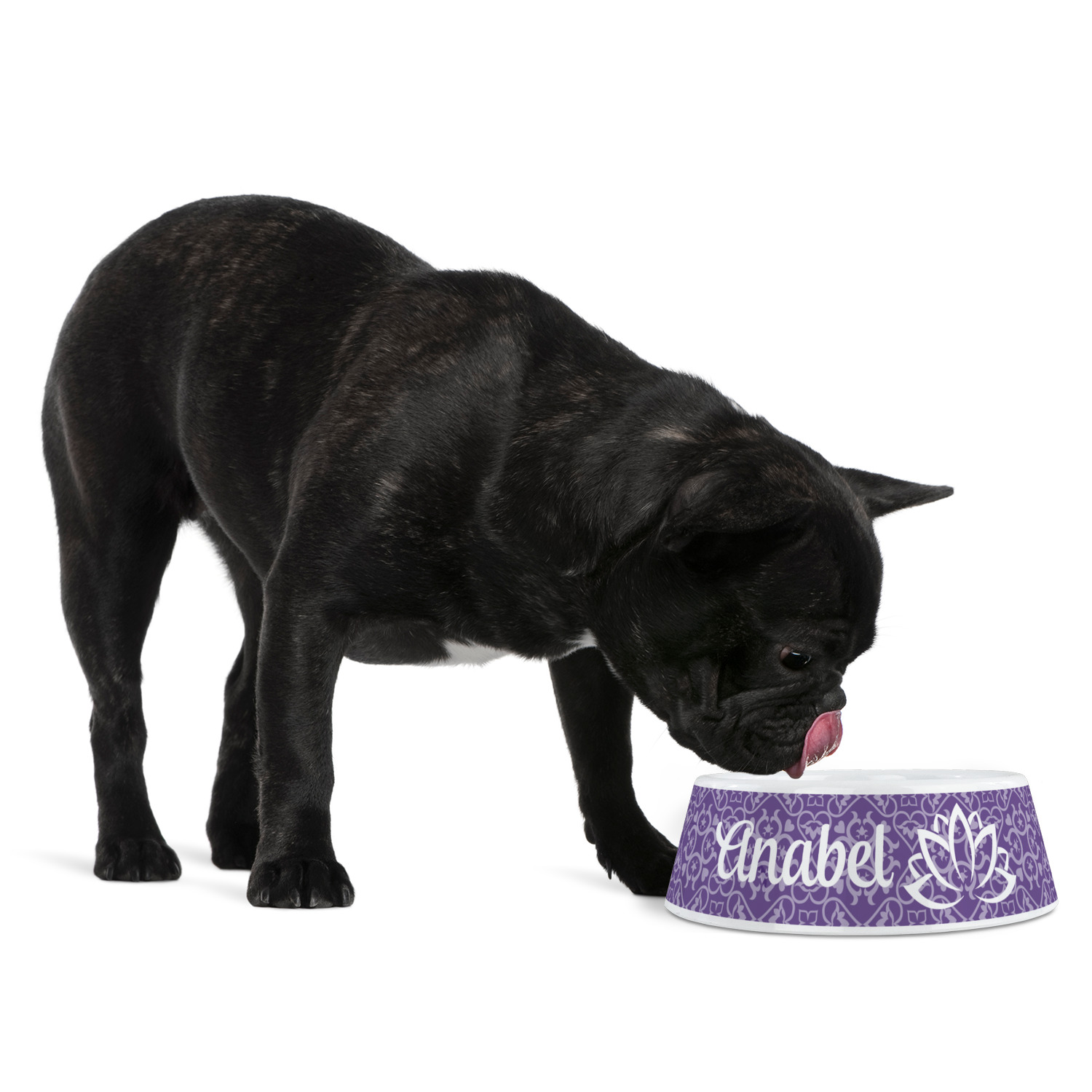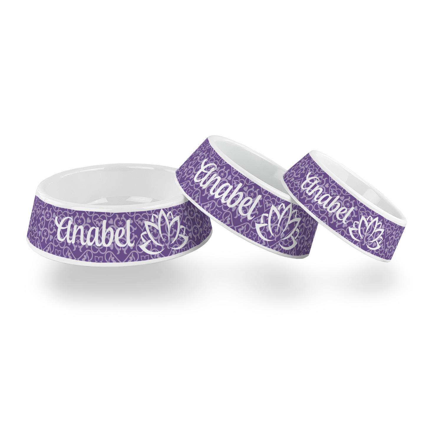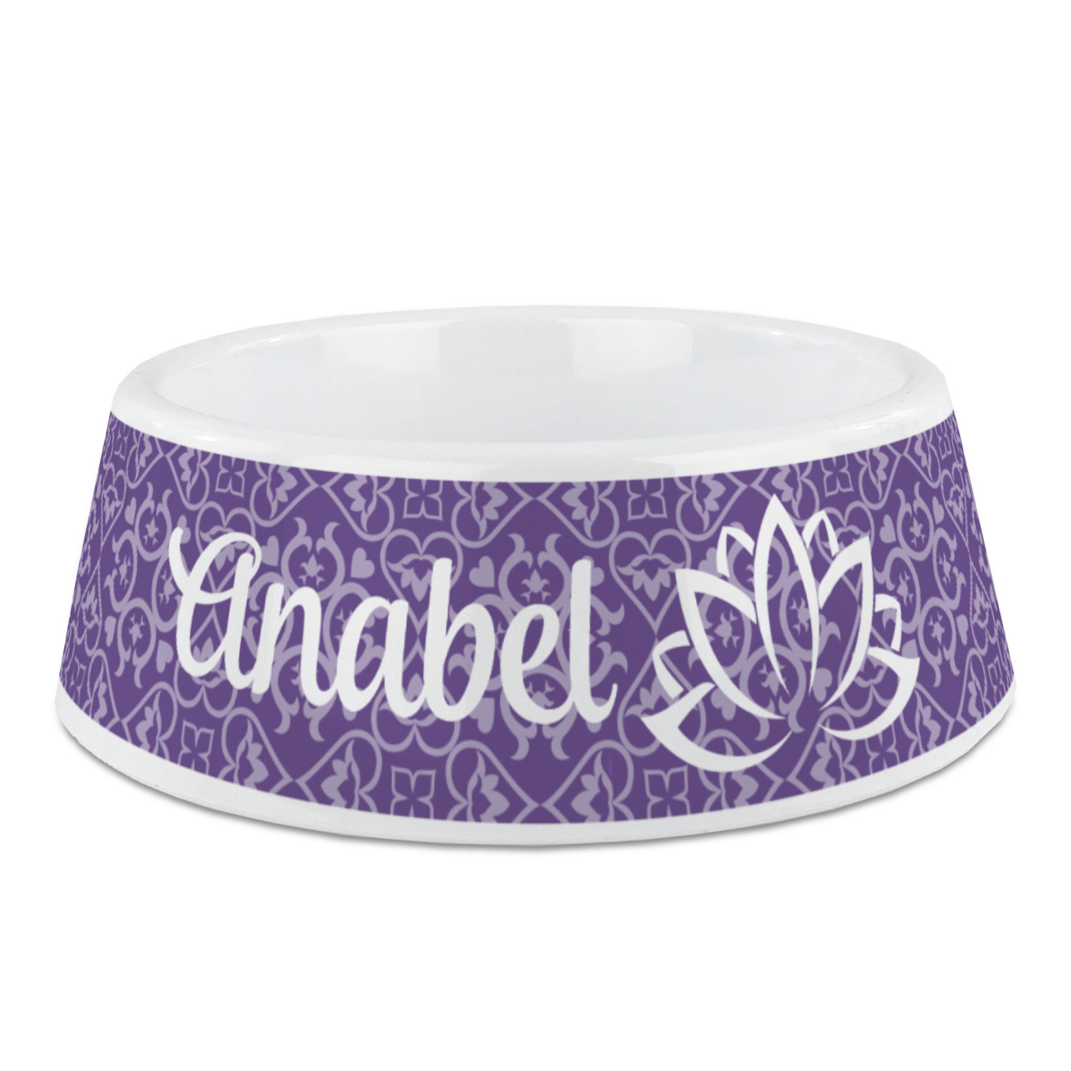 A purple scalloped label highlights a classic personalized monogram or the personalization of your choice.