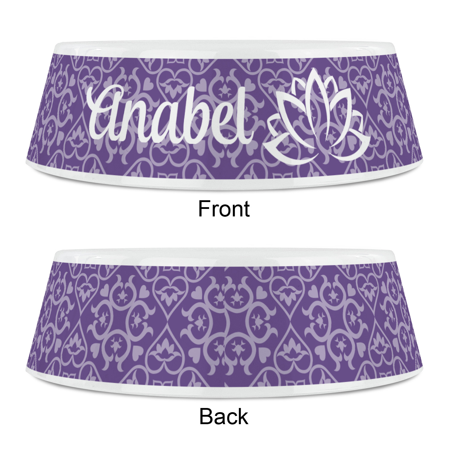 A purple scalloped label highlights a classic personalized monogram or the personalization of your choice.