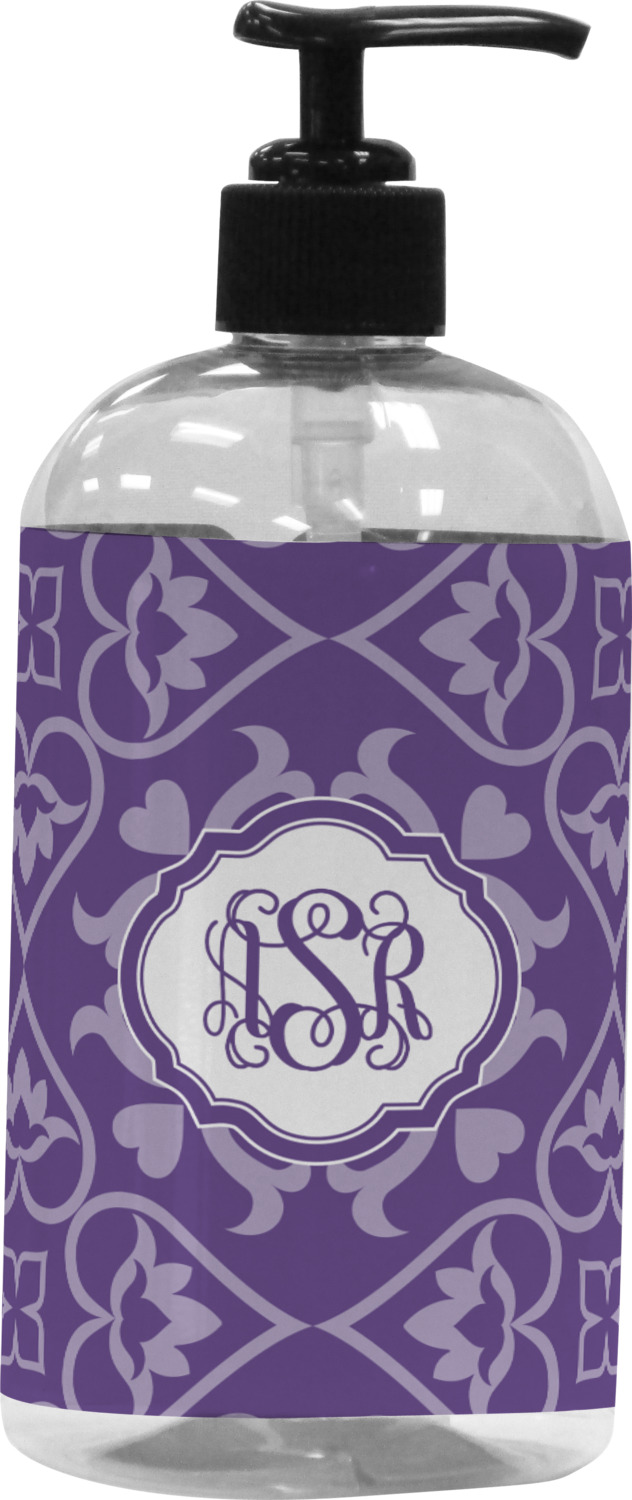 A purple scalloped label highlights a classic personalized monogram or the personalization of your choice.