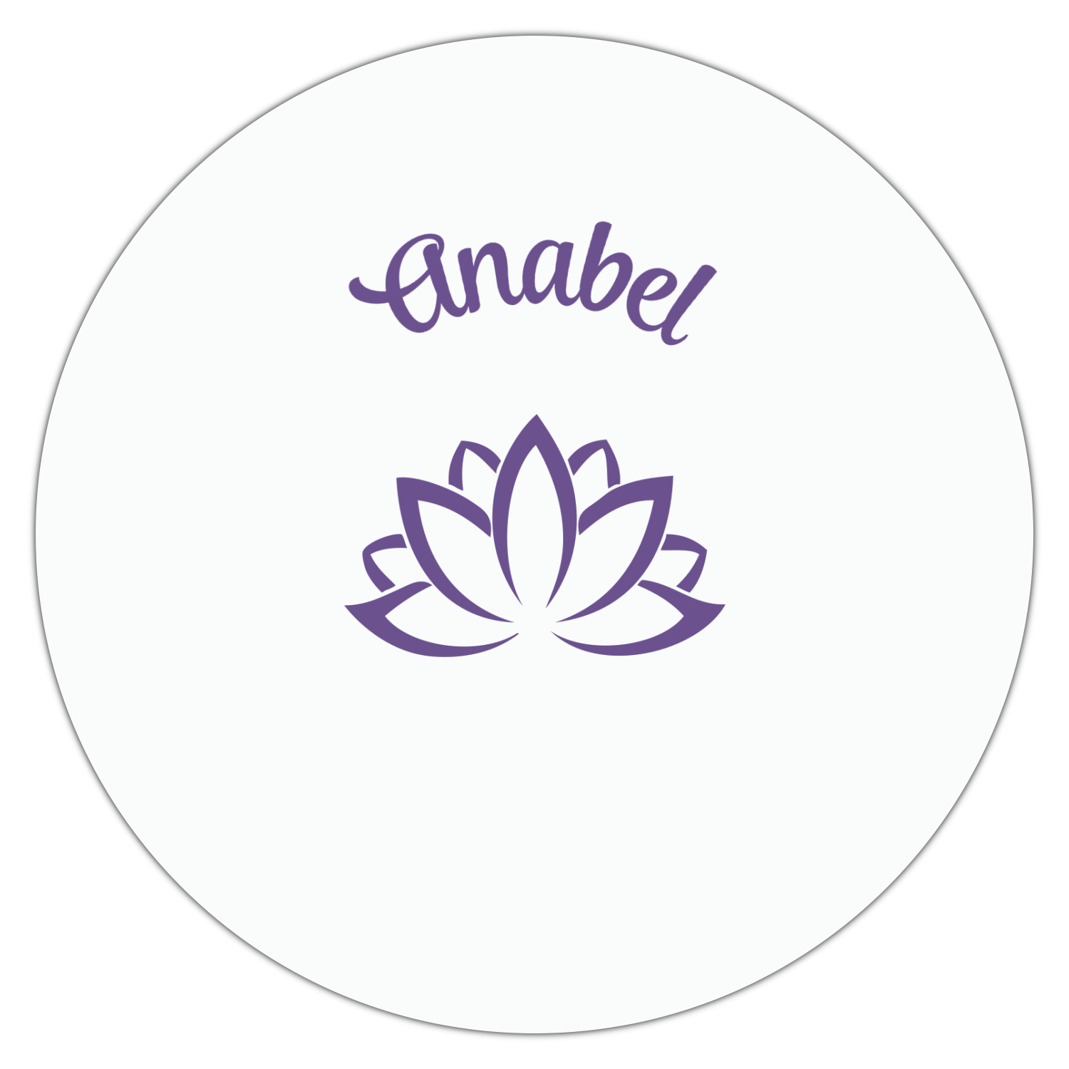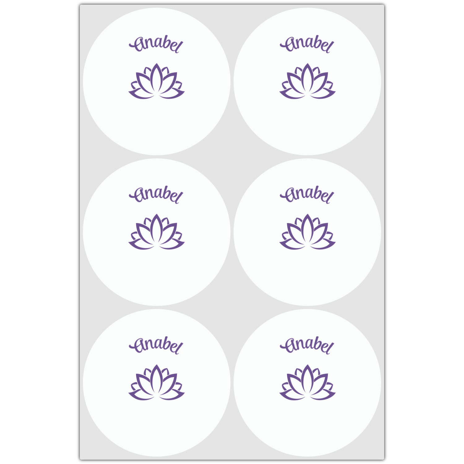 A purple scalloped label highlights a classic personalized monogram or the personalization of your choice.