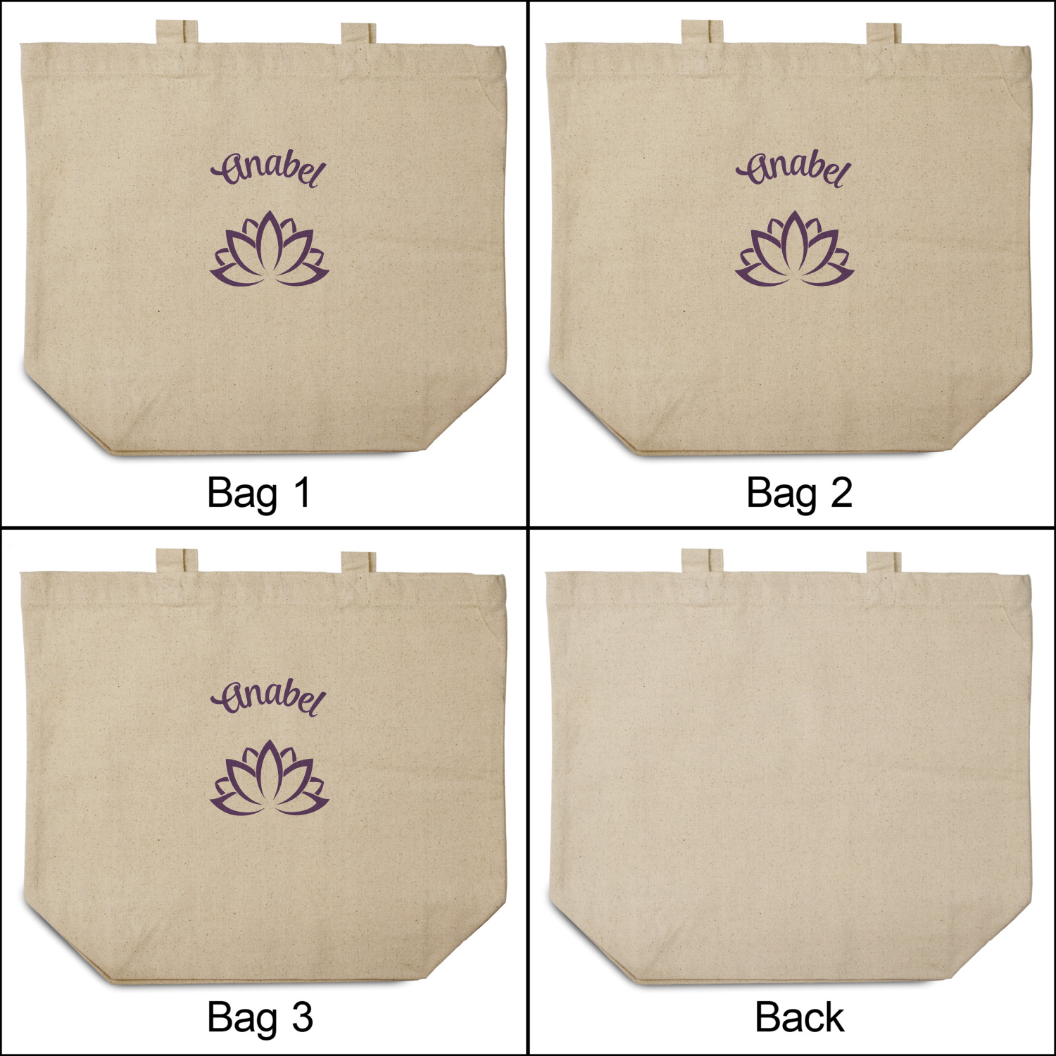 These cotton totes are washable and easy to care for, and they can be folded flat for storage. Your artwork, logo, or photo is printed in full color directly on the cotton tote in the front.