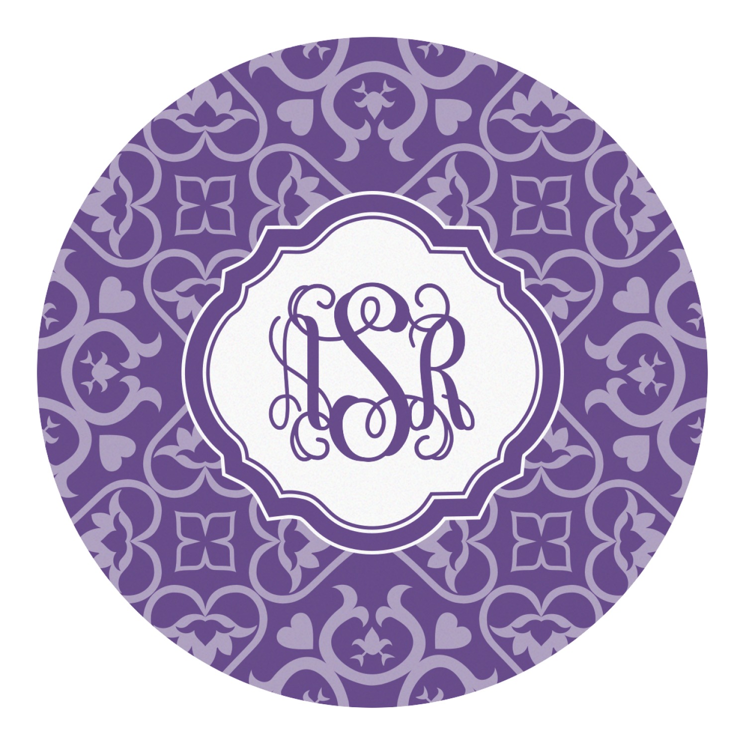 A purple scalloped label highlights a classic personalized monogram or the personalization of your choice.