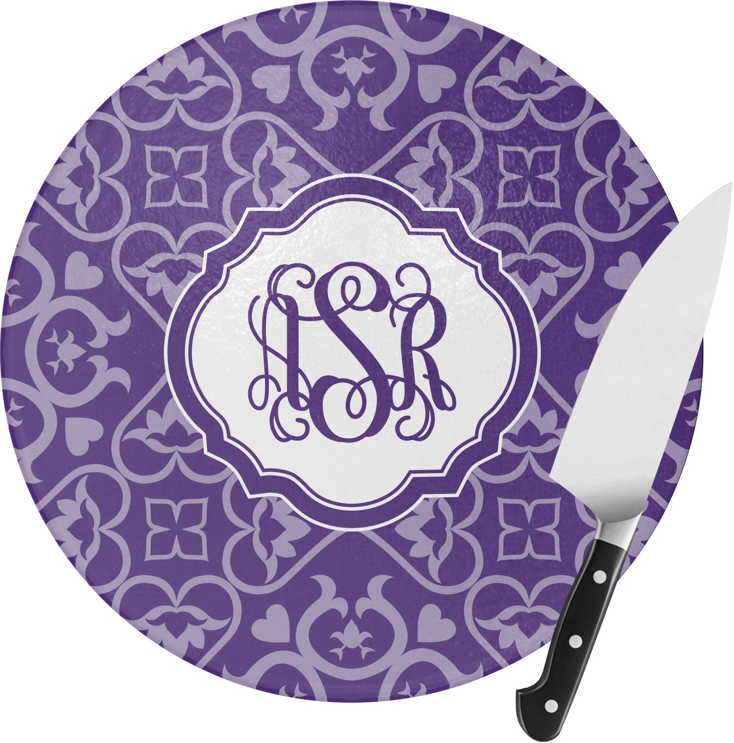 Prep your meals with passion when you use our personalized round cutting boards. The personalization options we offer really make them one of a kind and they are available in delightful colors and designs that might just keep you smiling instead off crying when you're cutting onions!!