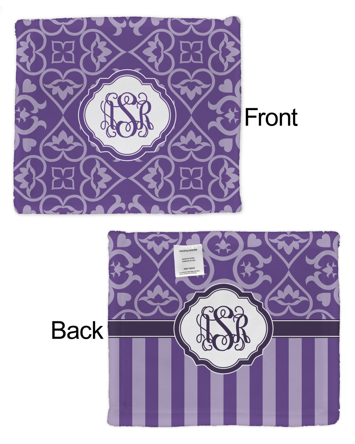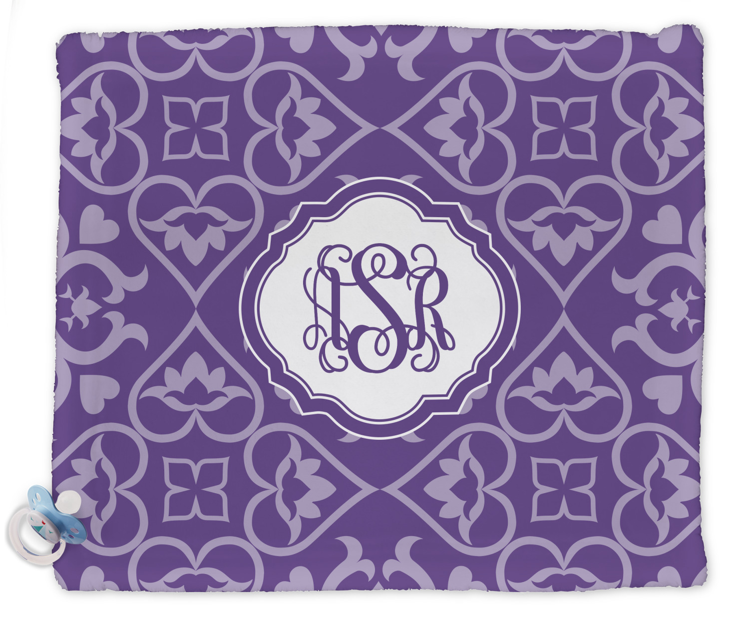 A purple scalloped label highlights a classic personalized monogram or the personalization of your choice.