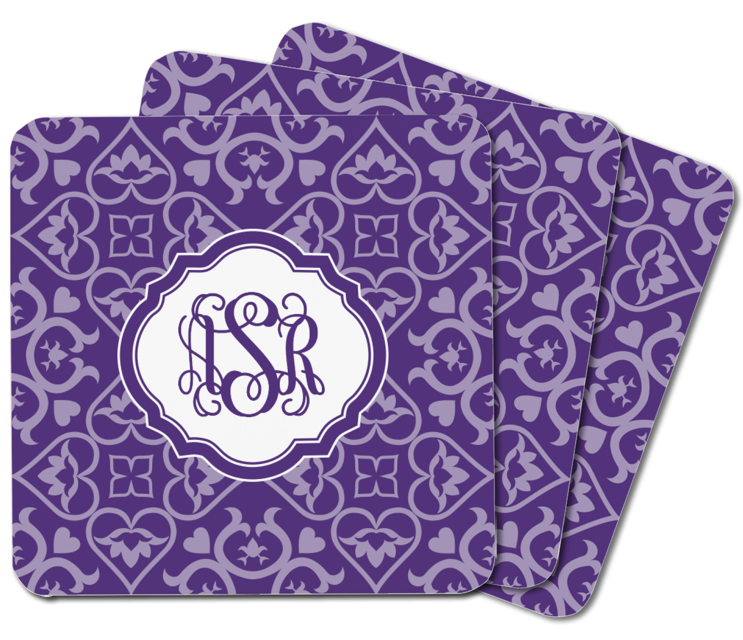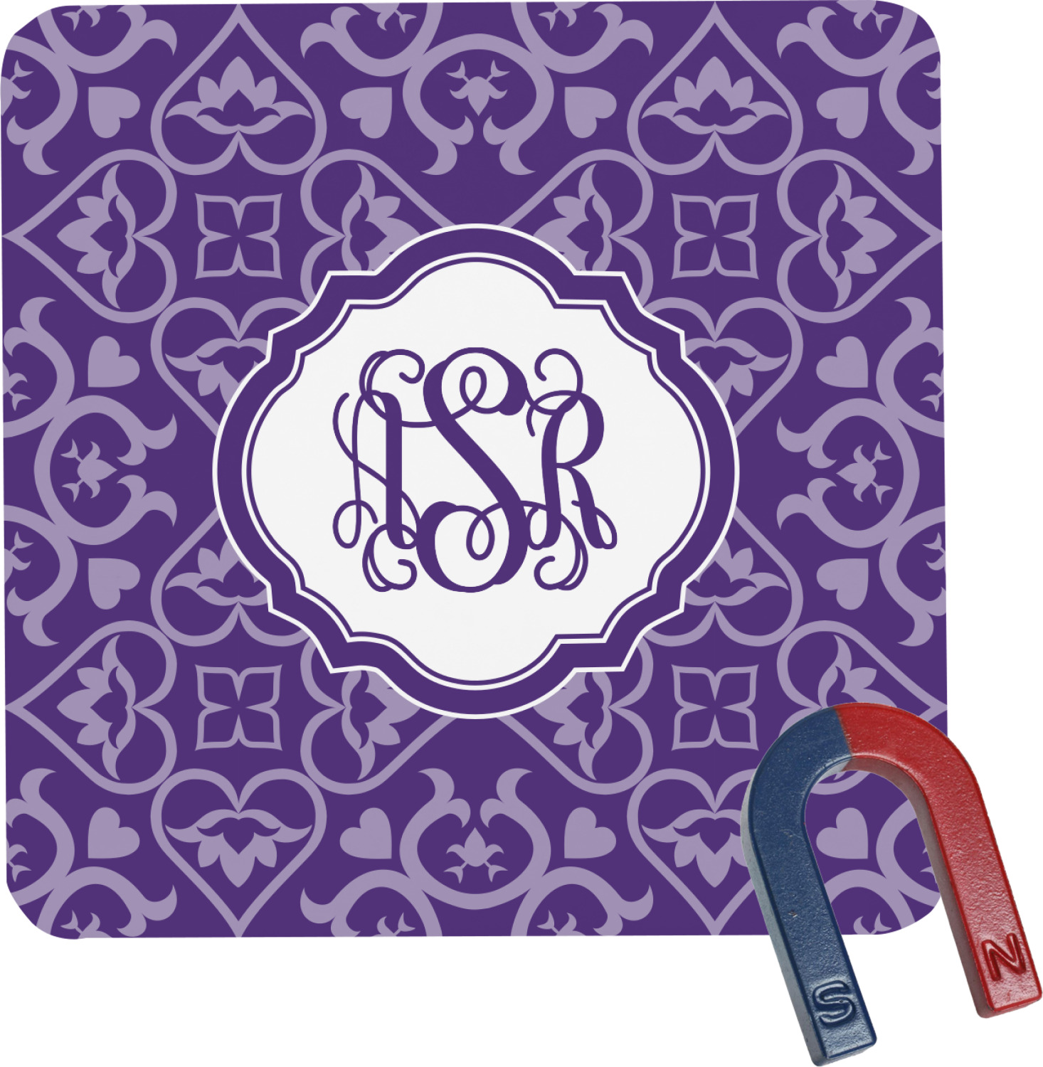 A purple scalloped label highlights a classic personalized monogram or the personalization of your choice.