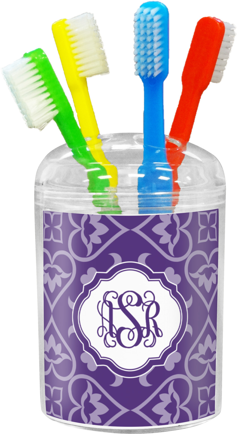 These bathroom toothbrush holders are built from acrylic, making them durable enough to withstand daily use. The stand itself is made of three different pieces: an inner cup, a base, and the lid featuring the four holes. Each toothbrush stand has a twist-off lid for easy cleaning and also features 4 holes to accommodate 4 toothbrushes. While designed for toothbrushes, these holders are multifunctional, and can be used for makeup brushes, paintbrushes, and more! Your customization is displayed on the side of this product on a fine-quality, vinyl insert.